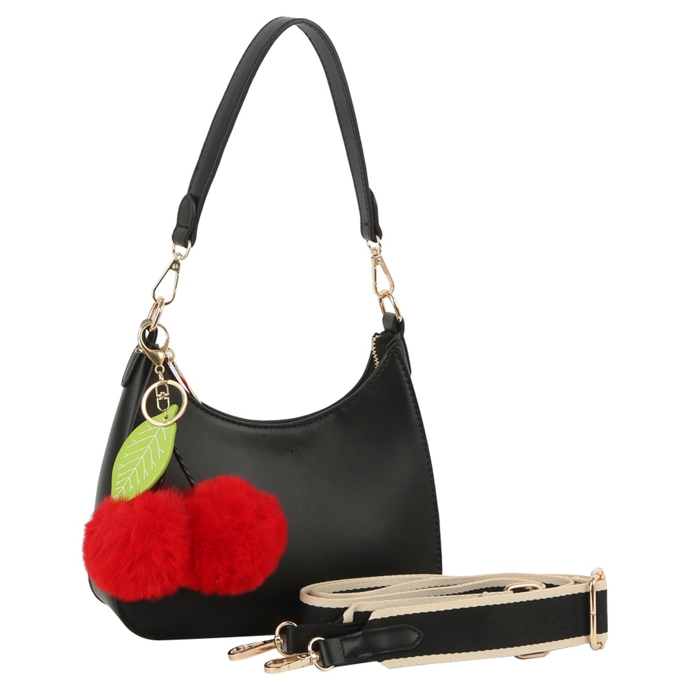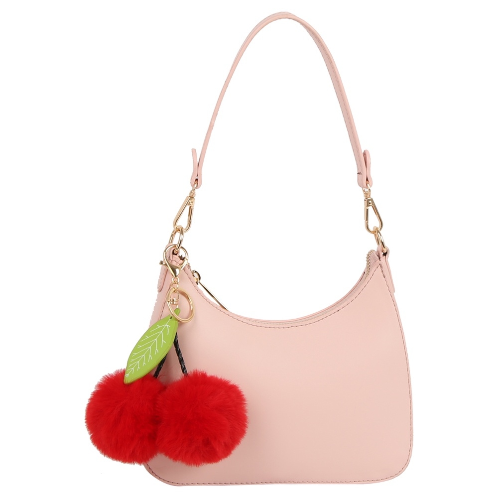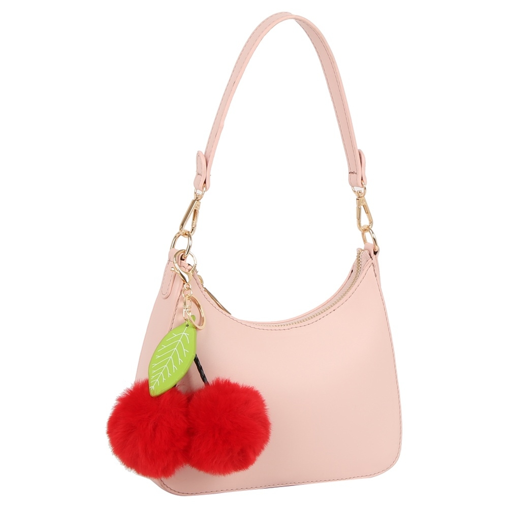 Add a touch of luxury to any outfit, this shoulder bag encompasses a grand fuzzy cherry mini design. This item is a great way to add some texture and dimension to any outfit. Available in BK, BS. This item is sold in packs of 1.