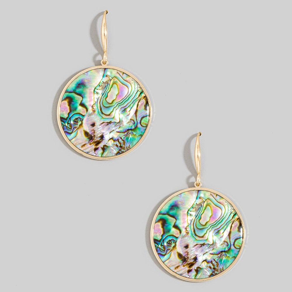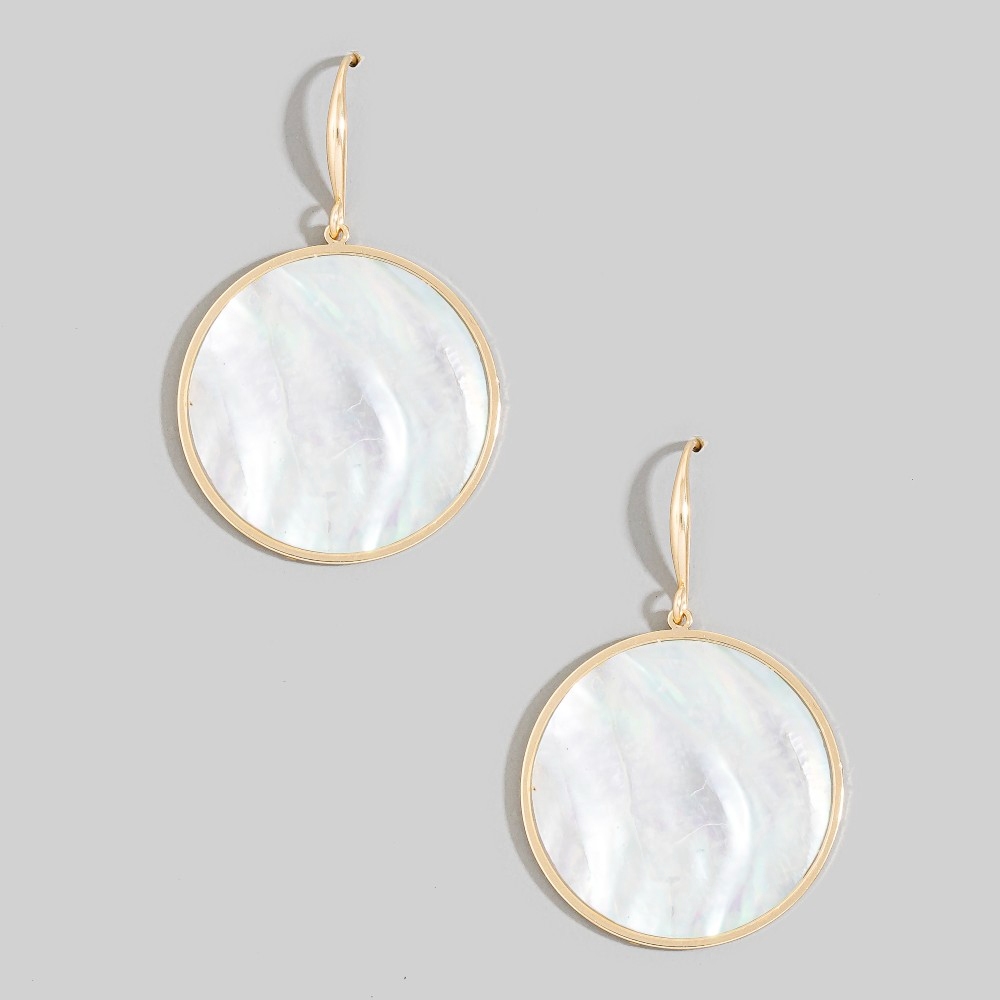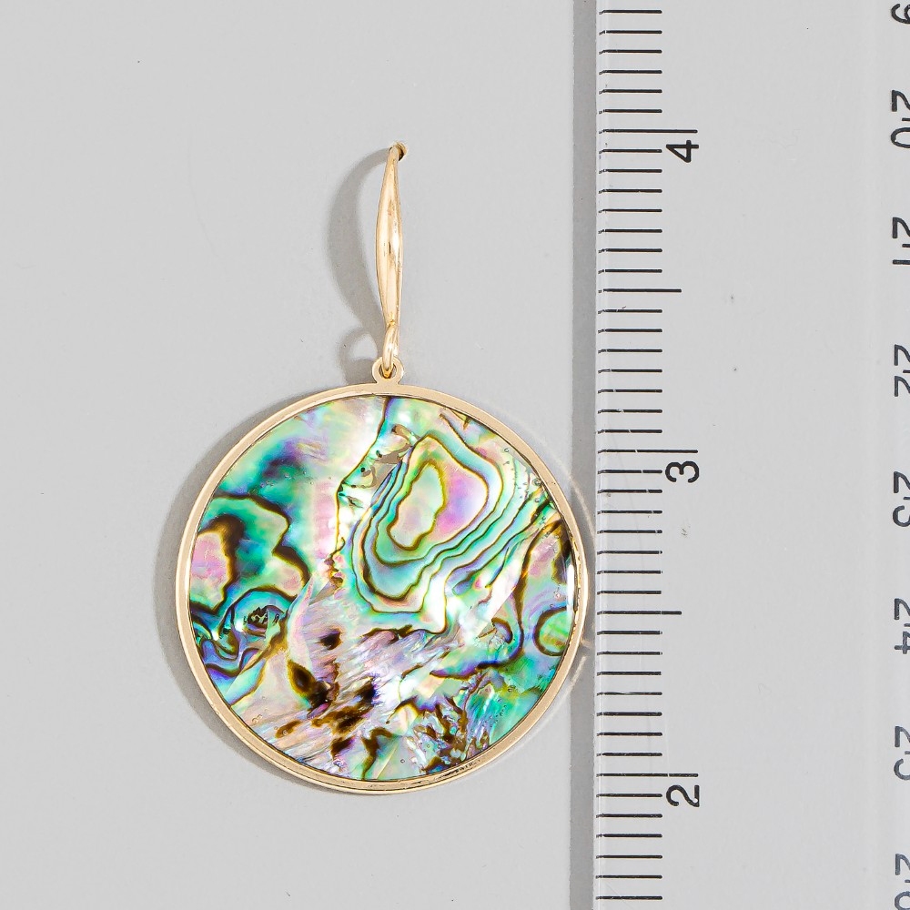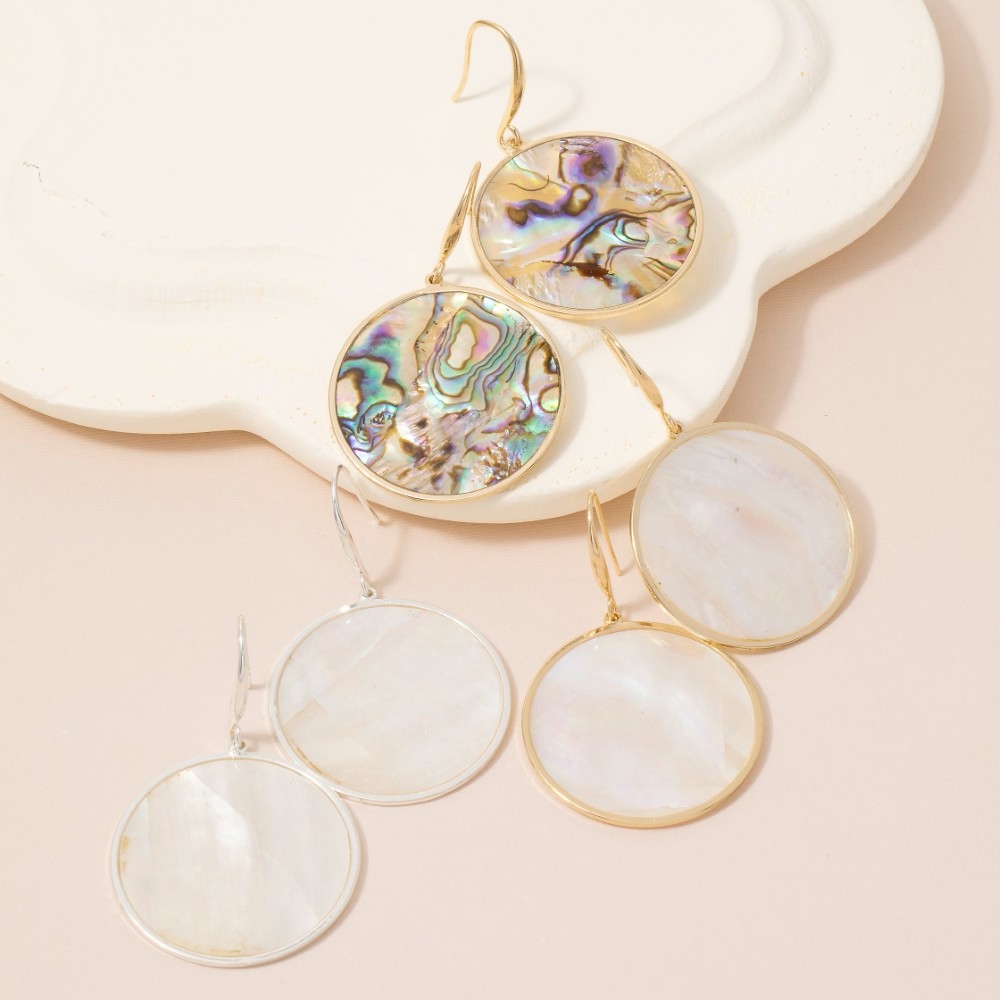 The epitome of sophistication and style, this pair of drop earrings showcases a breathtaking gold bezel circle shell design. Elevate your fashion IQ with this versatile pair of drop earrings, designed to seamlessly integrate into any style profile. Available in ABAGD, WHTGD, WHTSIL. This item is sold in packs of 1.