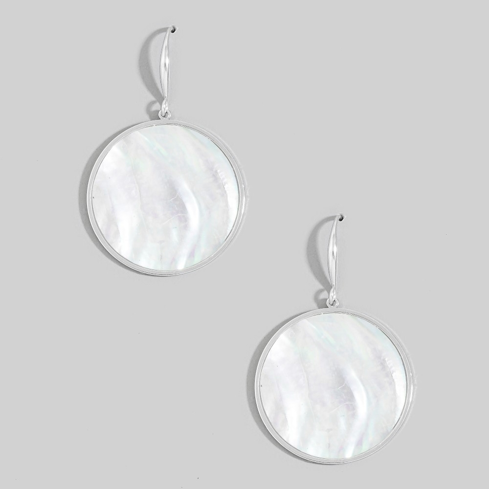 This pair of drop earrings is made with 90% Mother Of Pearl and 10% Metal.