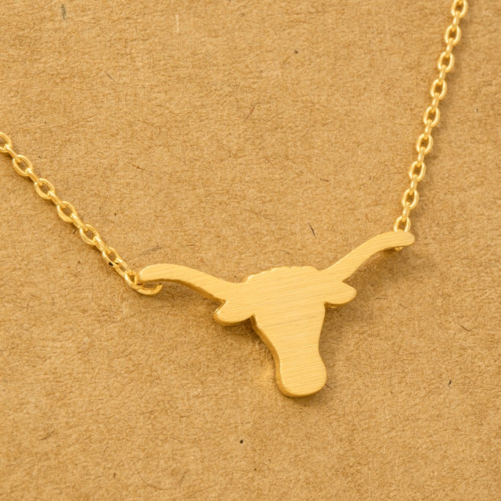 - This season's hottest trending necklace, this trending necklace encompasses a grand gold dipped bull head pendant necklace design. Add a touch of glamour to your wardrobe with this versatile trending necklace, perfect for enhancing the elegance of any look. Available in G, R, S. This item is sold in packs of 1.