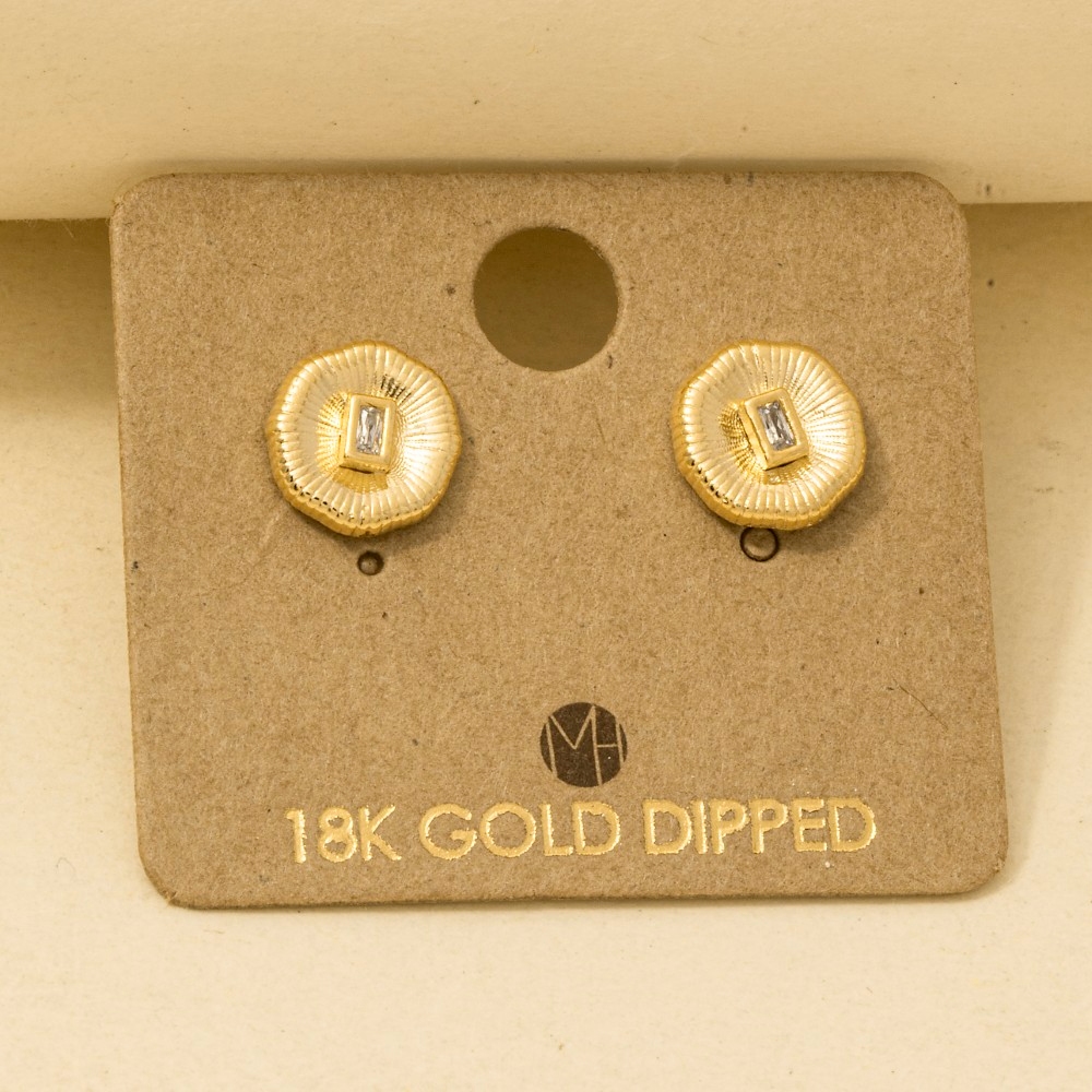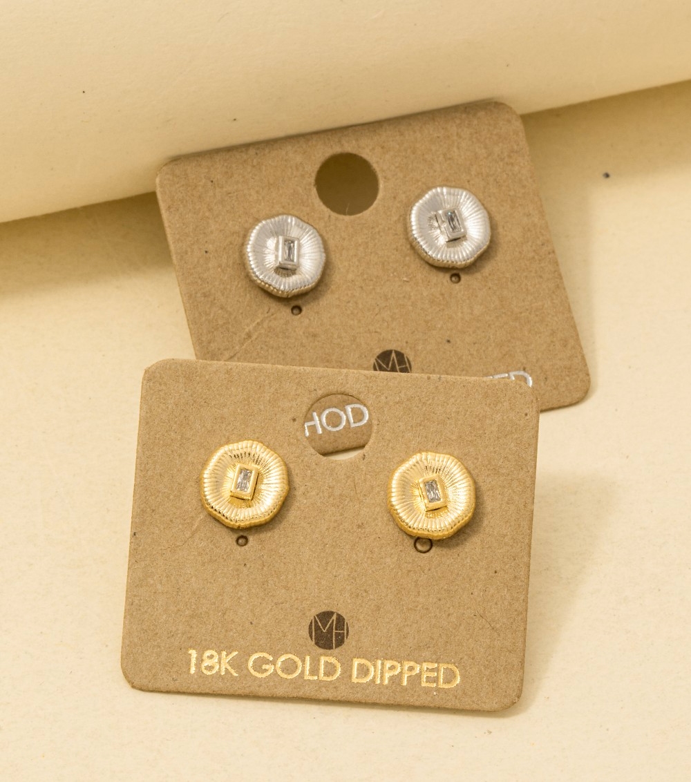 • This is the perfect trending pair of earrings for any occasion trending pair of earrings introduces an exceptional gold dipped circle baguette rhinestone stud earrings design. This trending pair of earrings is the perfect finishing touch to any outfit, adding a touch of sophistication and glamour. Available in G, S. This item is sold in packs of 1.