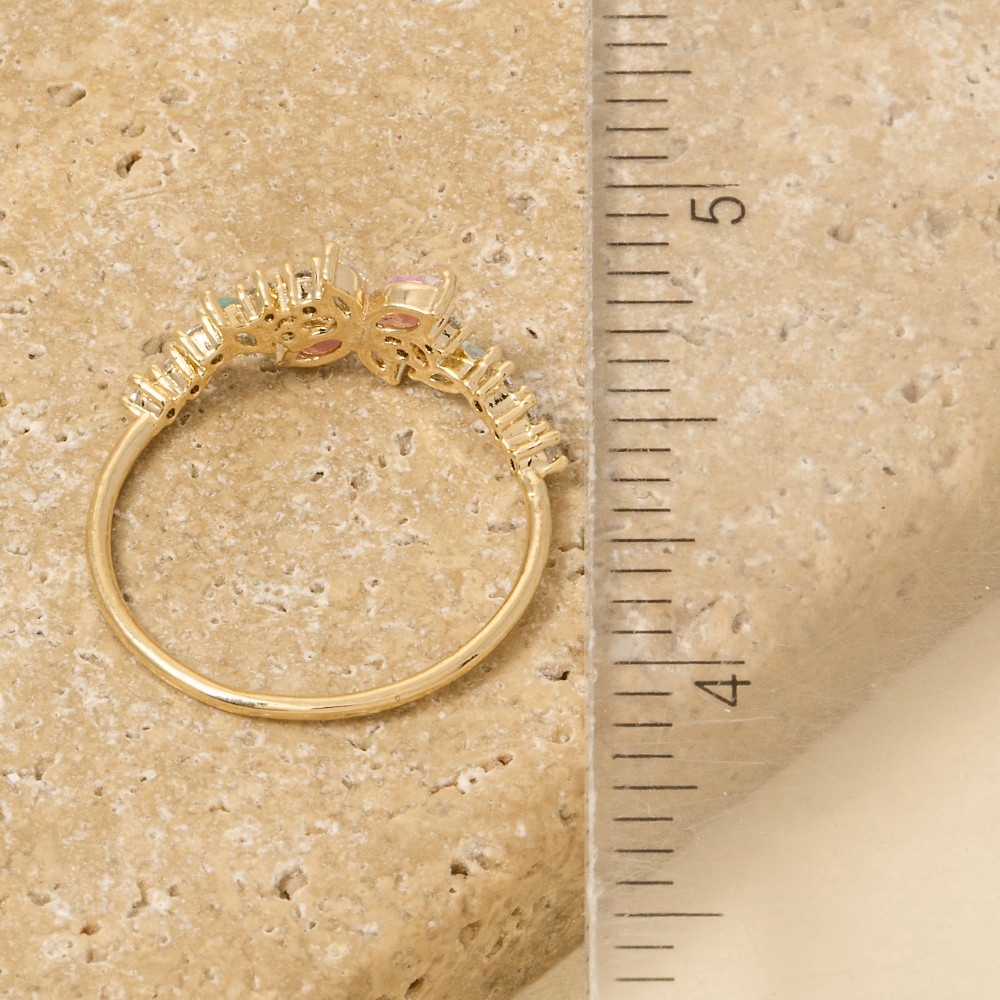 - This piece is the perfect way to add some glamour to your look, this ring showcases a breathtaking gold dipped colorful cubic zirconia flower design. Redefine your fashion identity with this versatile ring, a timeless piece that complements any wardrobe. Available in G. This item is sold in packs of 1.