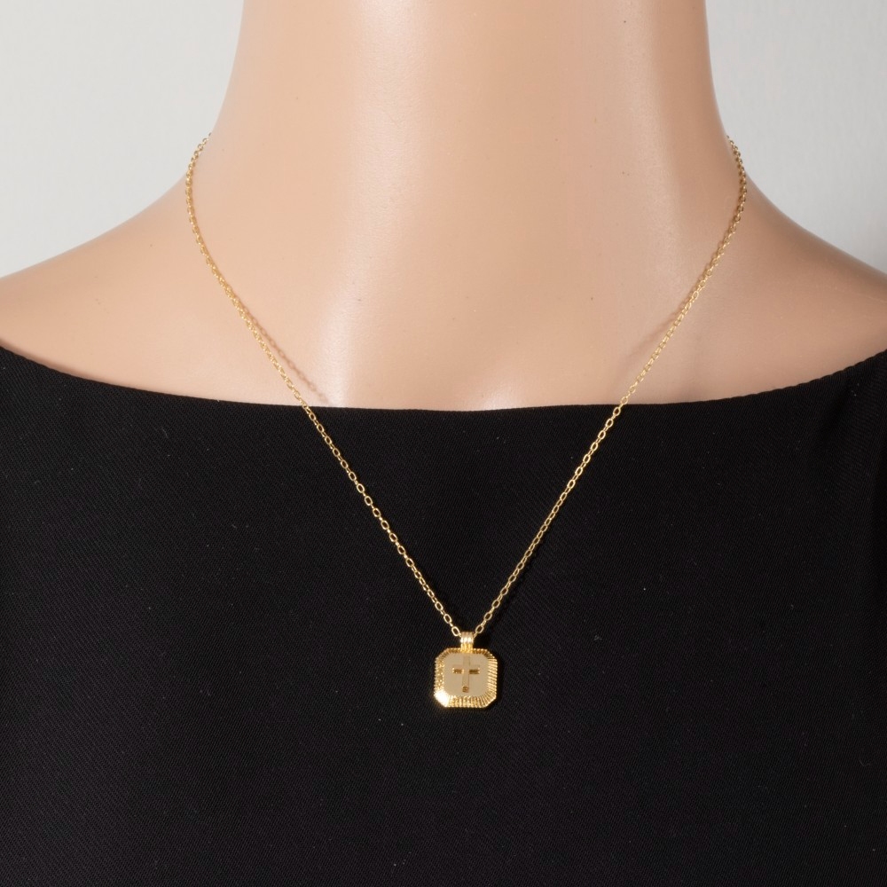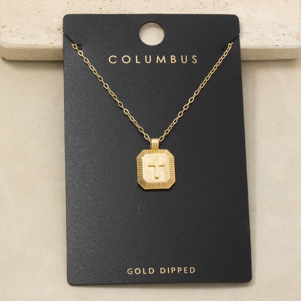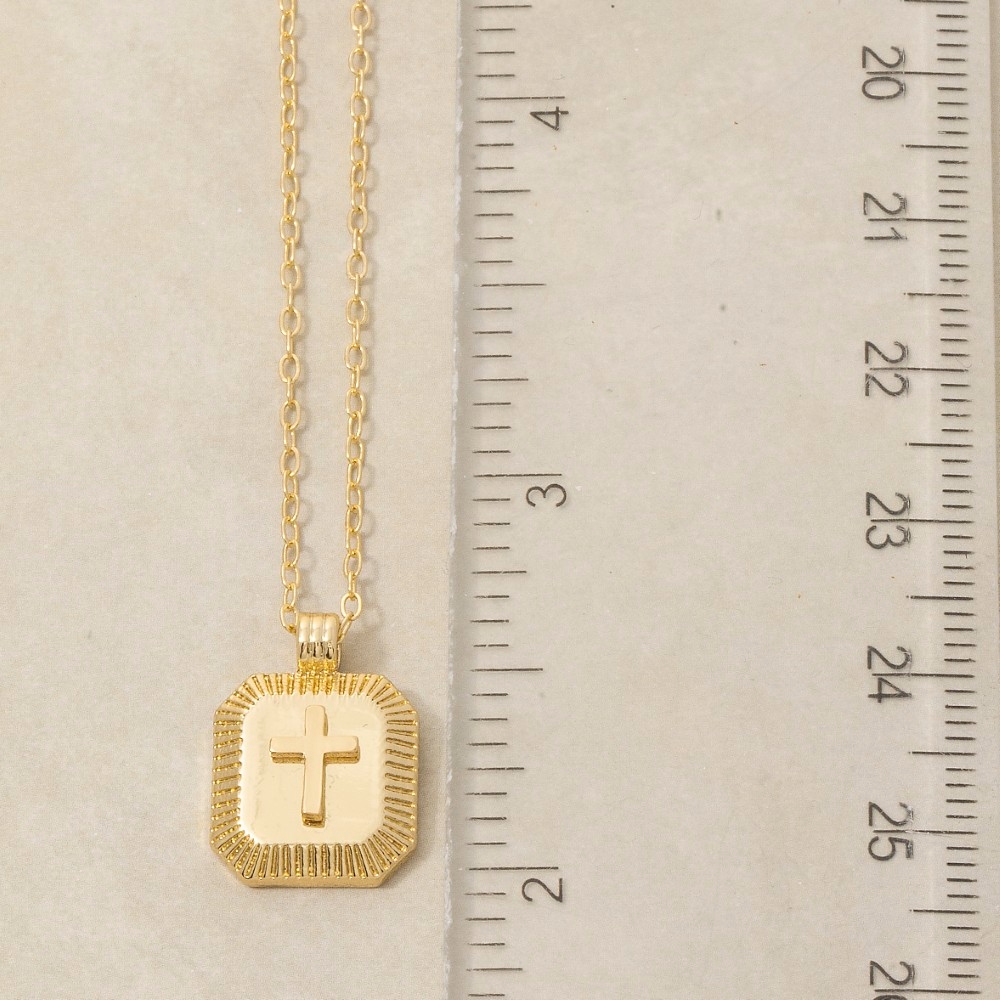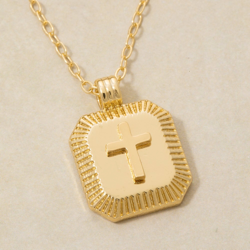 • A bold and daring choice that is sure to impress, this pendant necklace incorporates a flawless gold dipped cross square medallion design. This item is ideal for those who want to add some personality to their outfits without being too bold. Available in GOLD. This item is sold in packs of 1.