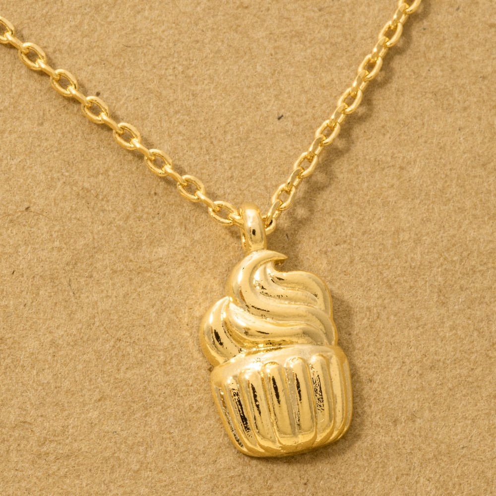 • The perfect way to elevate any outfit, this trending necklace flaunts a luxurious gold dipped cupcake pendant necklace design. This item adds the perfect finishing touch to any outfit, making it stand out from the crowd. Available in G, R, S. This item is sold in packs of 1.