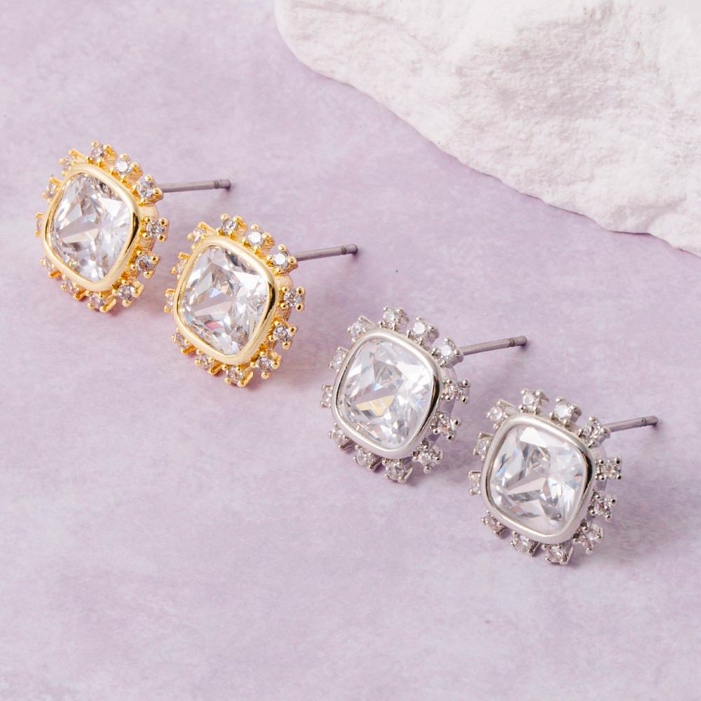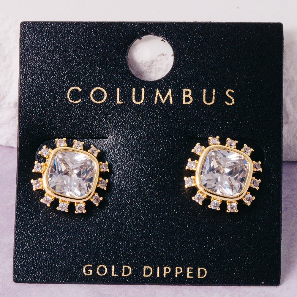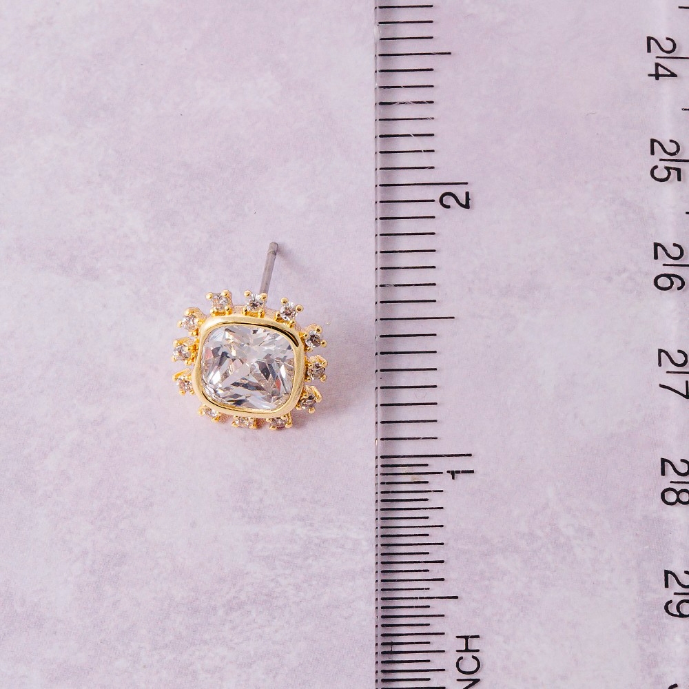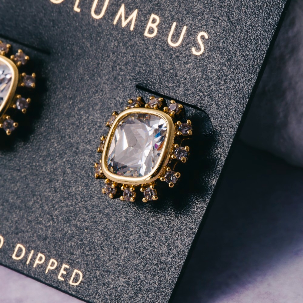 • Unleash your inner fashionista, this pair of stud earrings boasts a magnificent gold dipped cushion cut crystal halo design. Infuse your ensemble with a touch of sophistication using this versatile pair of stud earrings, a game-changer in the world of fashion. Available in 2. This item is sold in packs of 1.