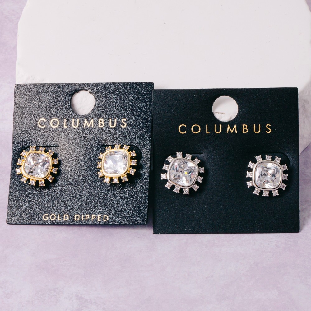 • This pair of stud earrings is made with 85% Cubic Zirconia, 10% Brass and 5% Ssp.