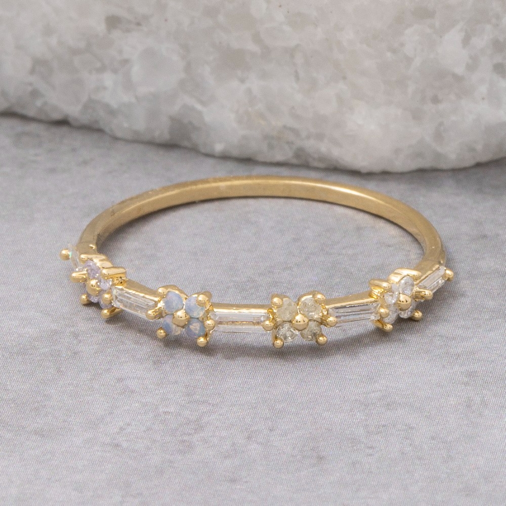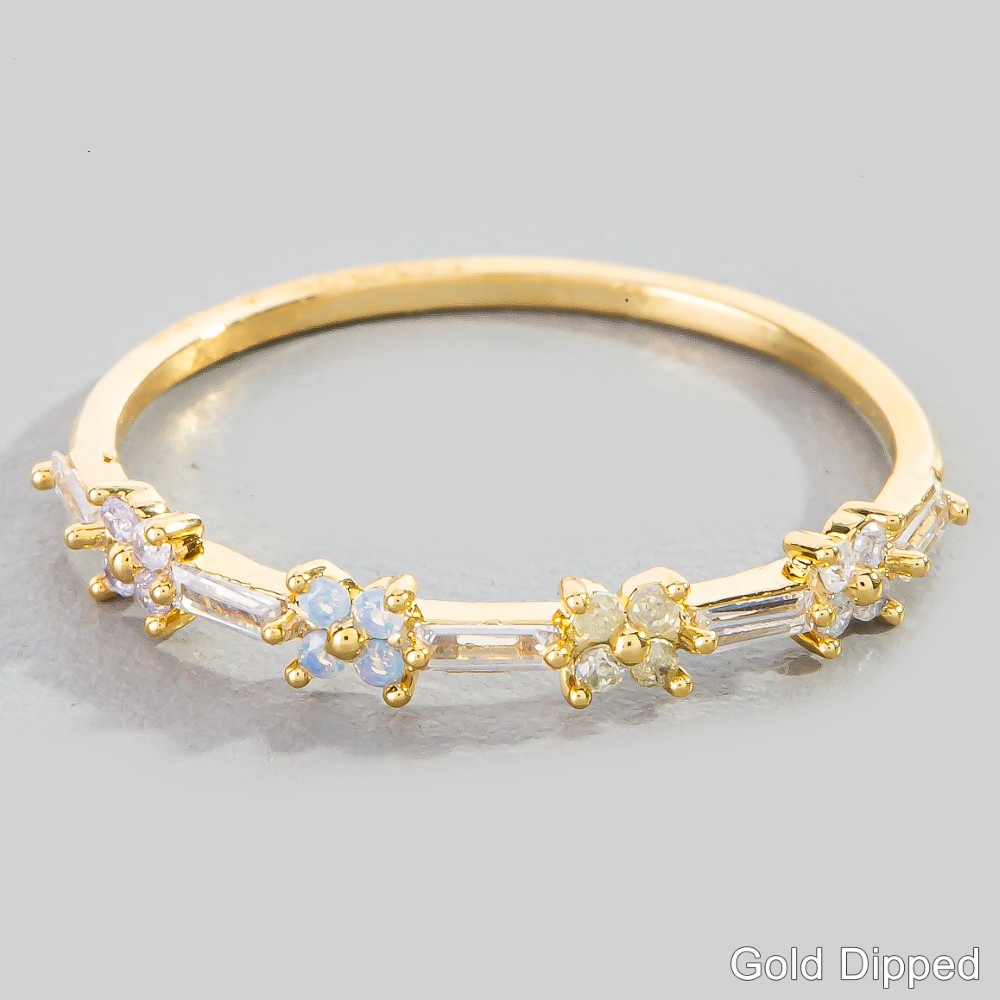 Sleek, modern, and always stylish, this ring includes a stunning gold dipped cubic zirconia baguette flower design. This item is perfect for anyone who loves to accessorize and add some personality to their outfits. Available in G. This item is sold in packs of 1.