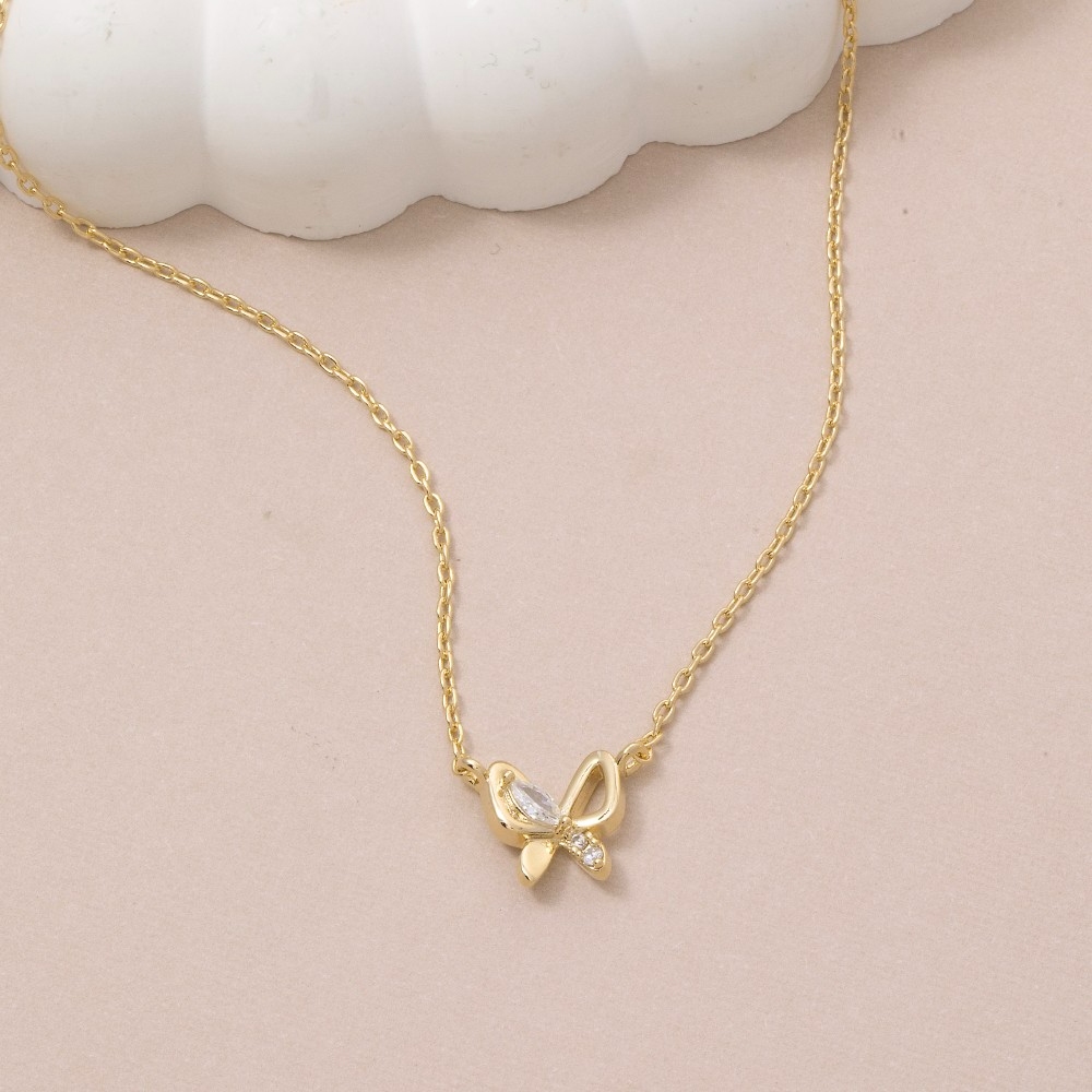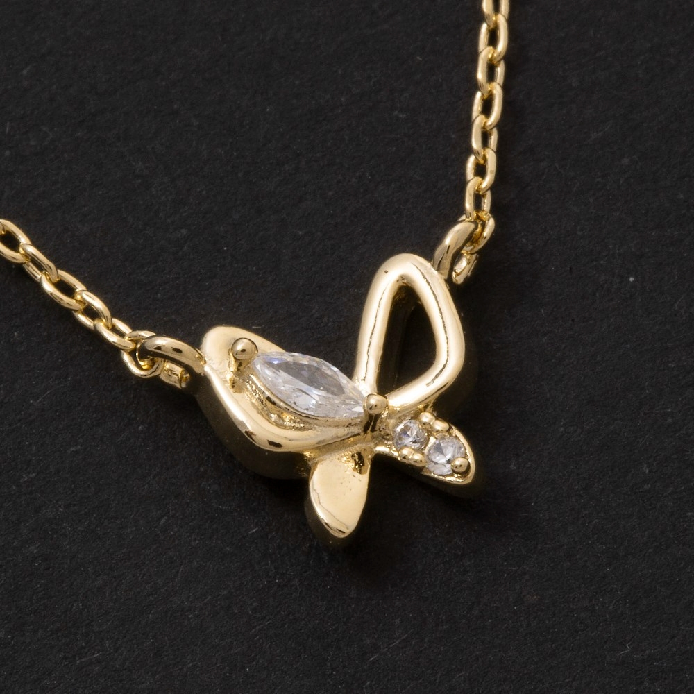 This piece is the perfect way to add some glamour to your look, this pendant necklace carries a charming gold dipped cubic zirconia butterfly design. Elevate your style effortlessly with this versatile pendant necklace, enhancing the appeal of any ensemble. This item is sold in packs of 12.