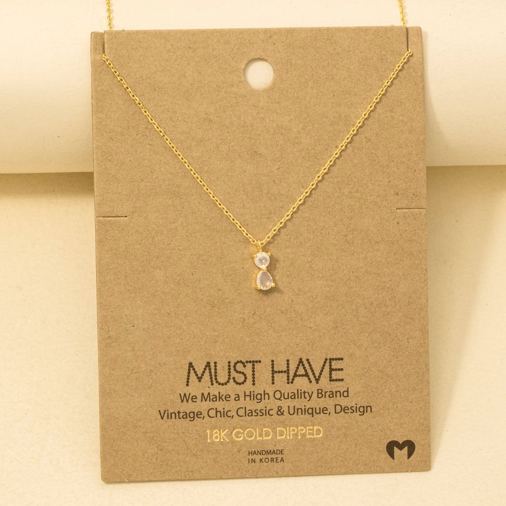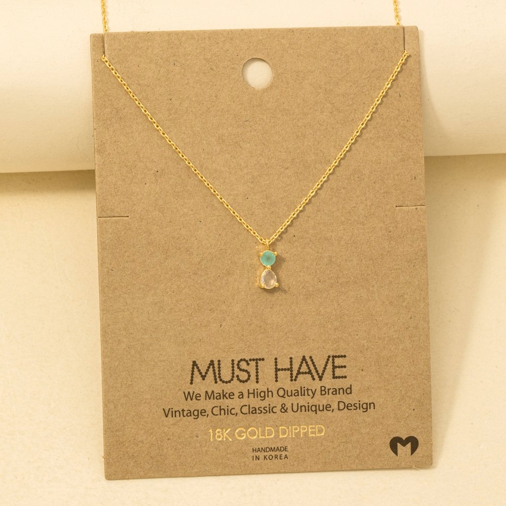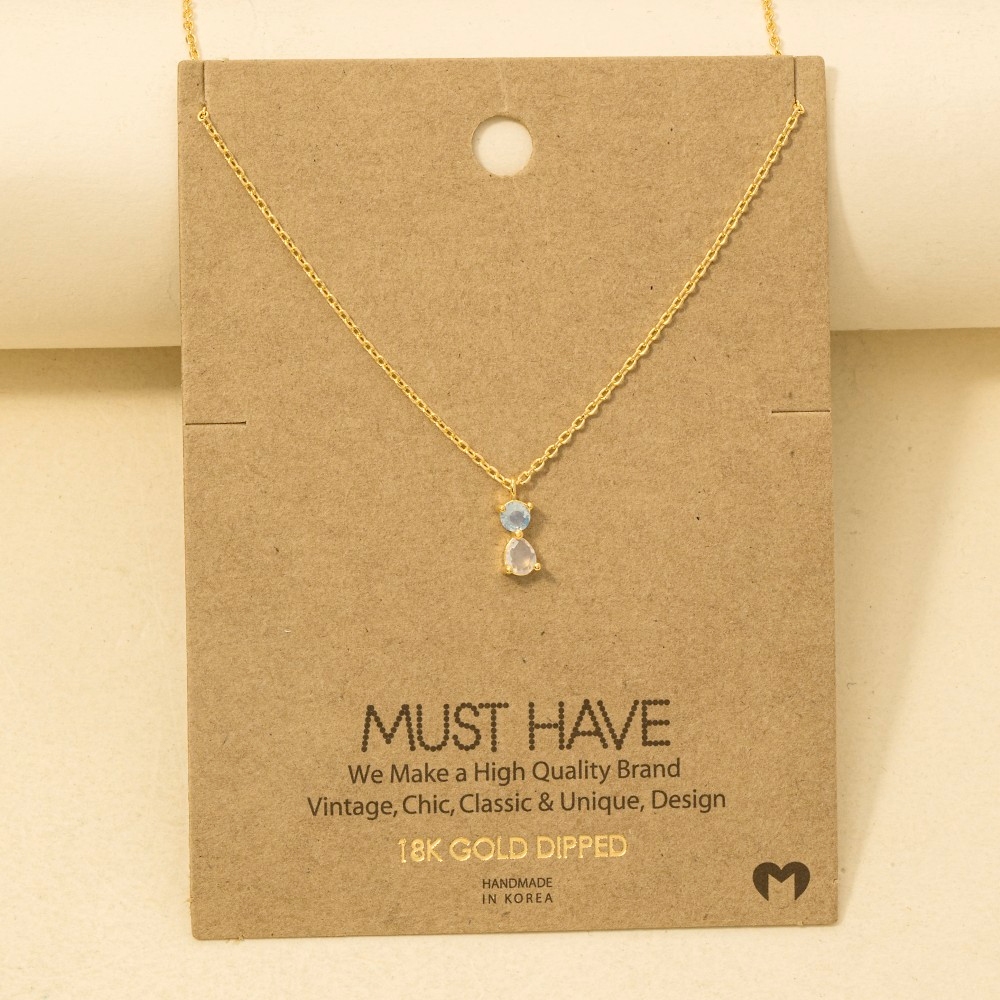 - Perfect for any occasion, this trending necklace shows off a distinctive gold dipped cubic zirconia circle and teardrop pendant necklace design. A stylish trending necklace that's perfect for complementing your favorite outfit. Available in BL, GN, PK, WH. This item is sold in packs of 1.