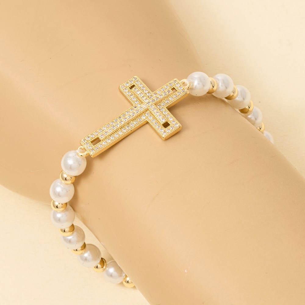 • Bold, daring, and endlessly stylish, this bracelet features a distinct gold dipped cubic zirconia cross pearl beads design. This item adds the perfect finishing touch to any outfit, making it stand out from the crowd. Available in GS. This item is sold in packs of 1.