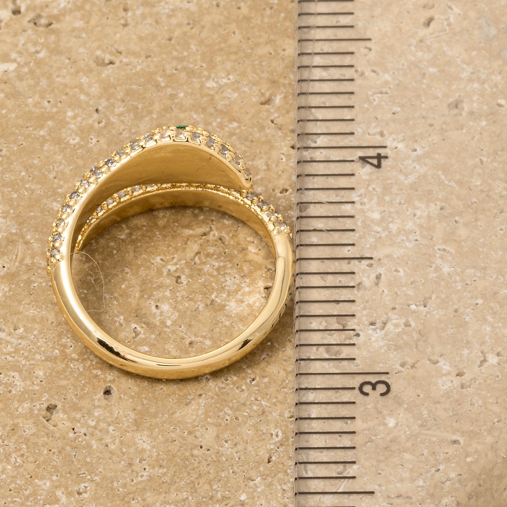 A stunning piece that is sure to turn heads, this ring possesses a fine gold dipped cubic zirconia pave snake open band design. Elevate your everyday style with this versatile ring, a simple yet impactful addition to your fashion repertoire. Available in G, X. This item is sold in packs of 1.
