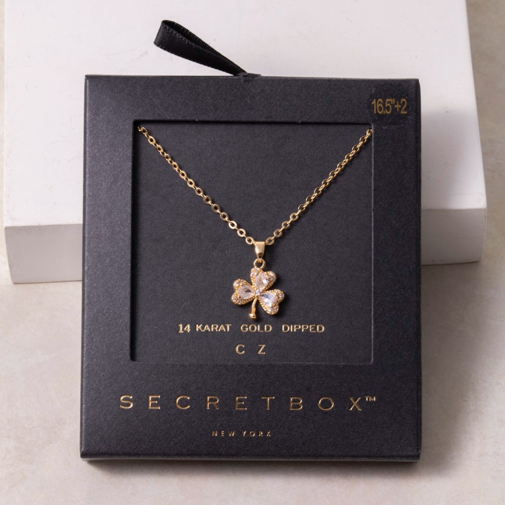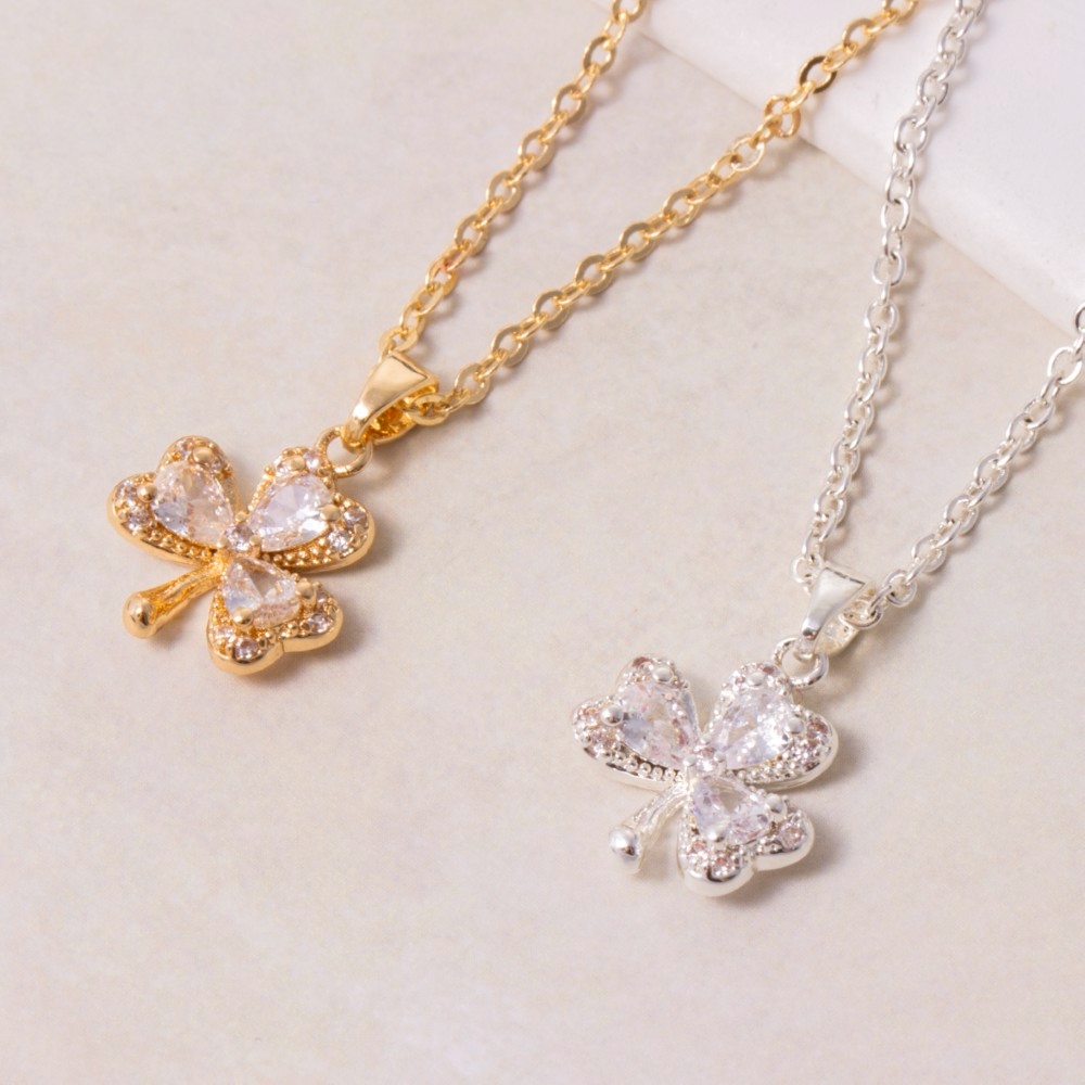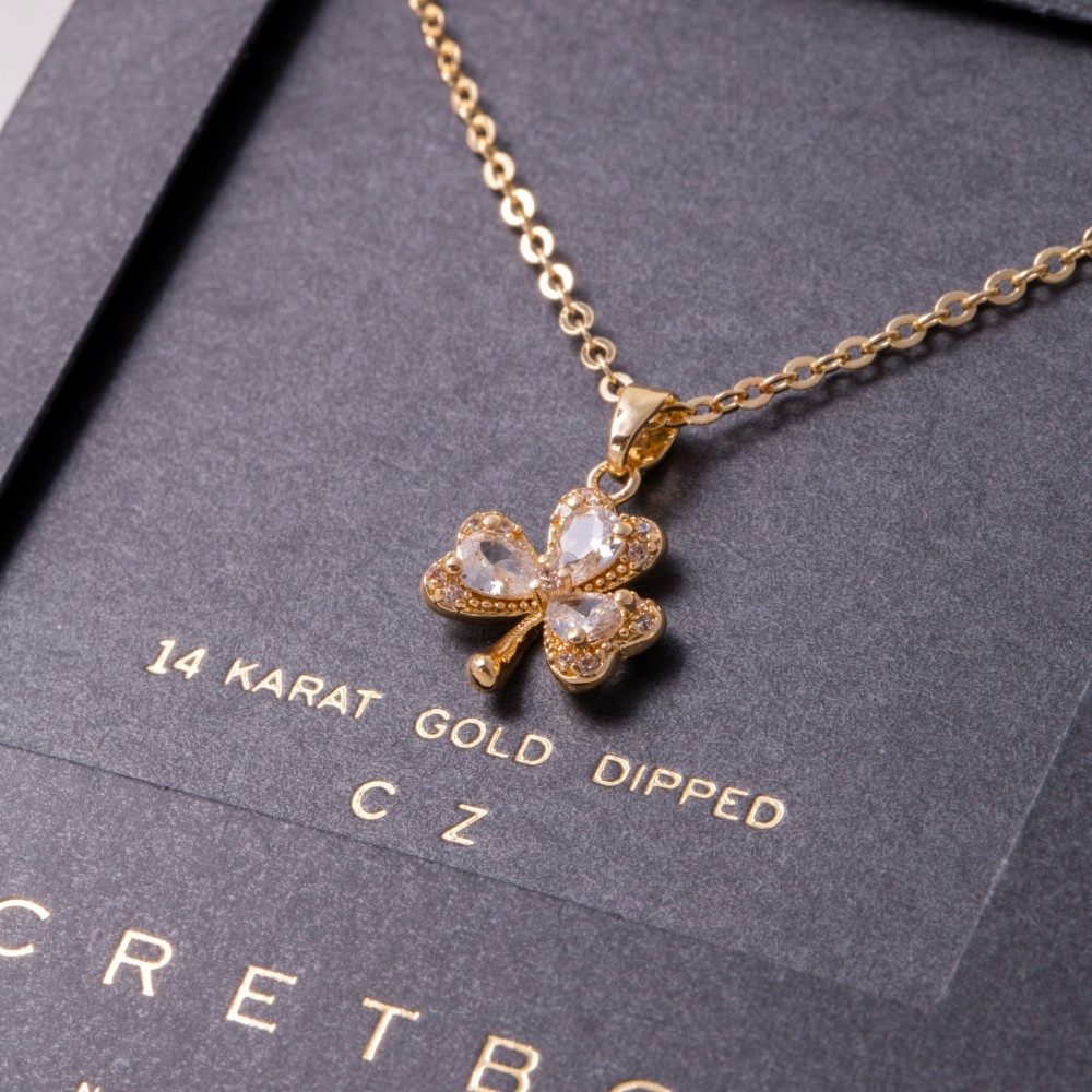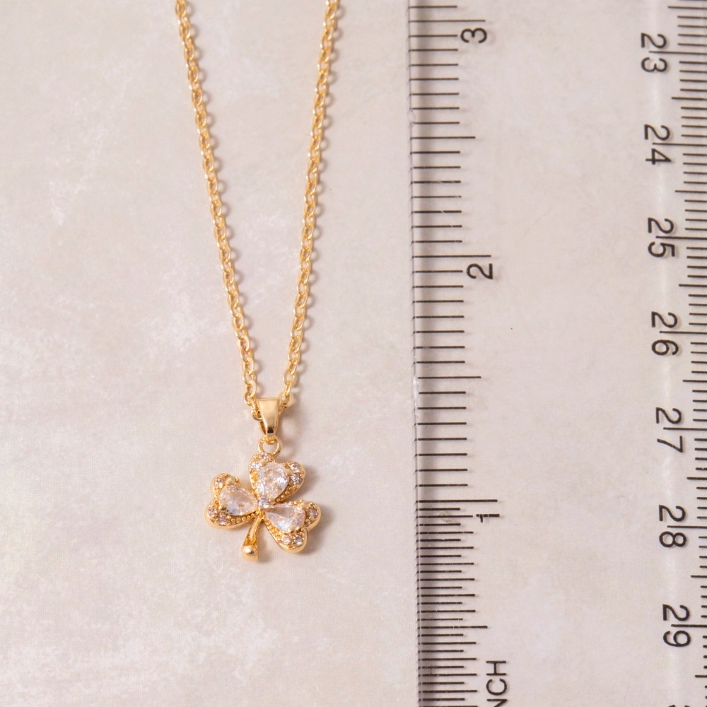 A bold and daring choice that is sure to impress, this pendant necklace flaunts a luxurious gold dipped cubic zirconia shamrock clover design. Infuse a hint of luxury into your daily attire with this versatile pendant necklace, a must-have for those who appreciate timeless elegance. Available in GD, WG. This item is sold in packs of 1.