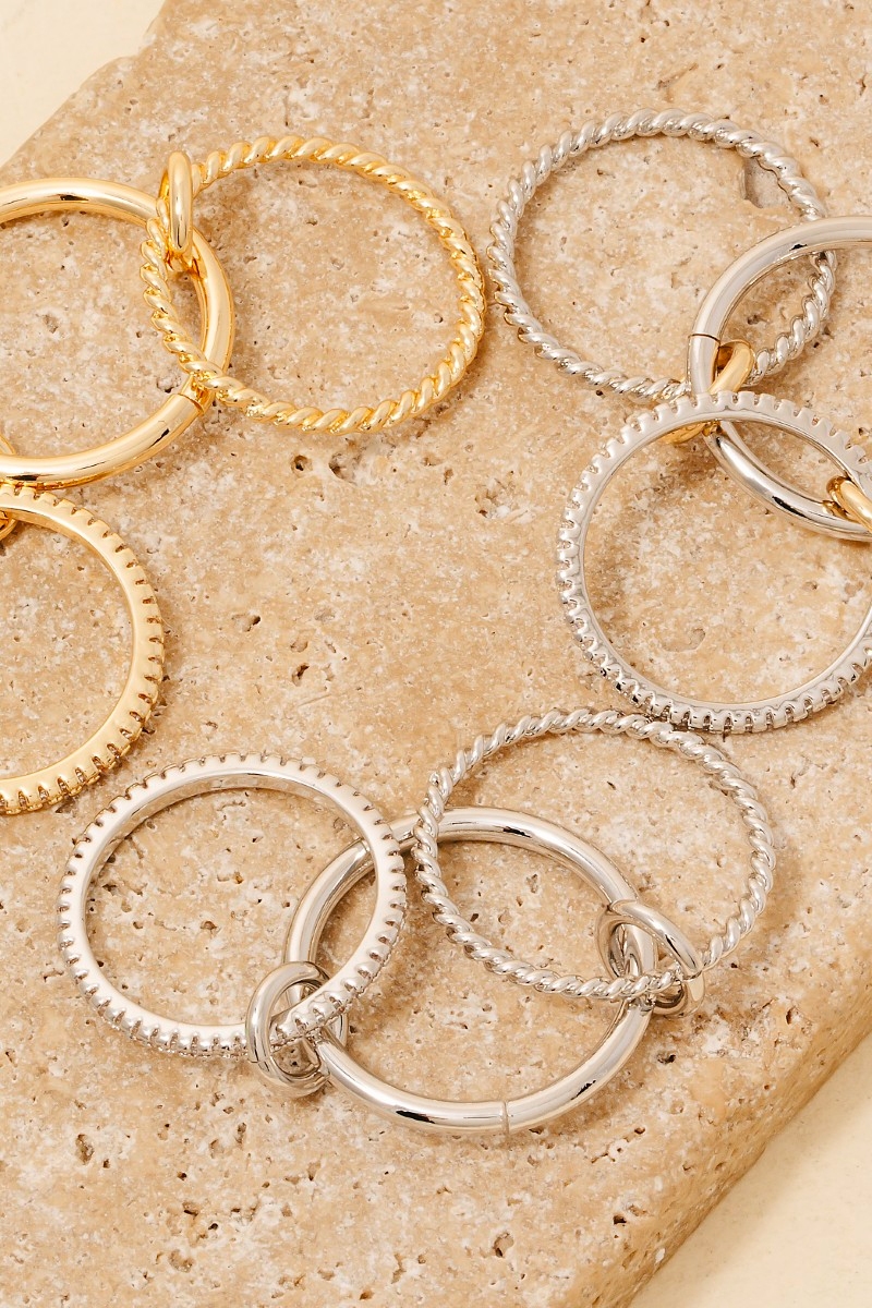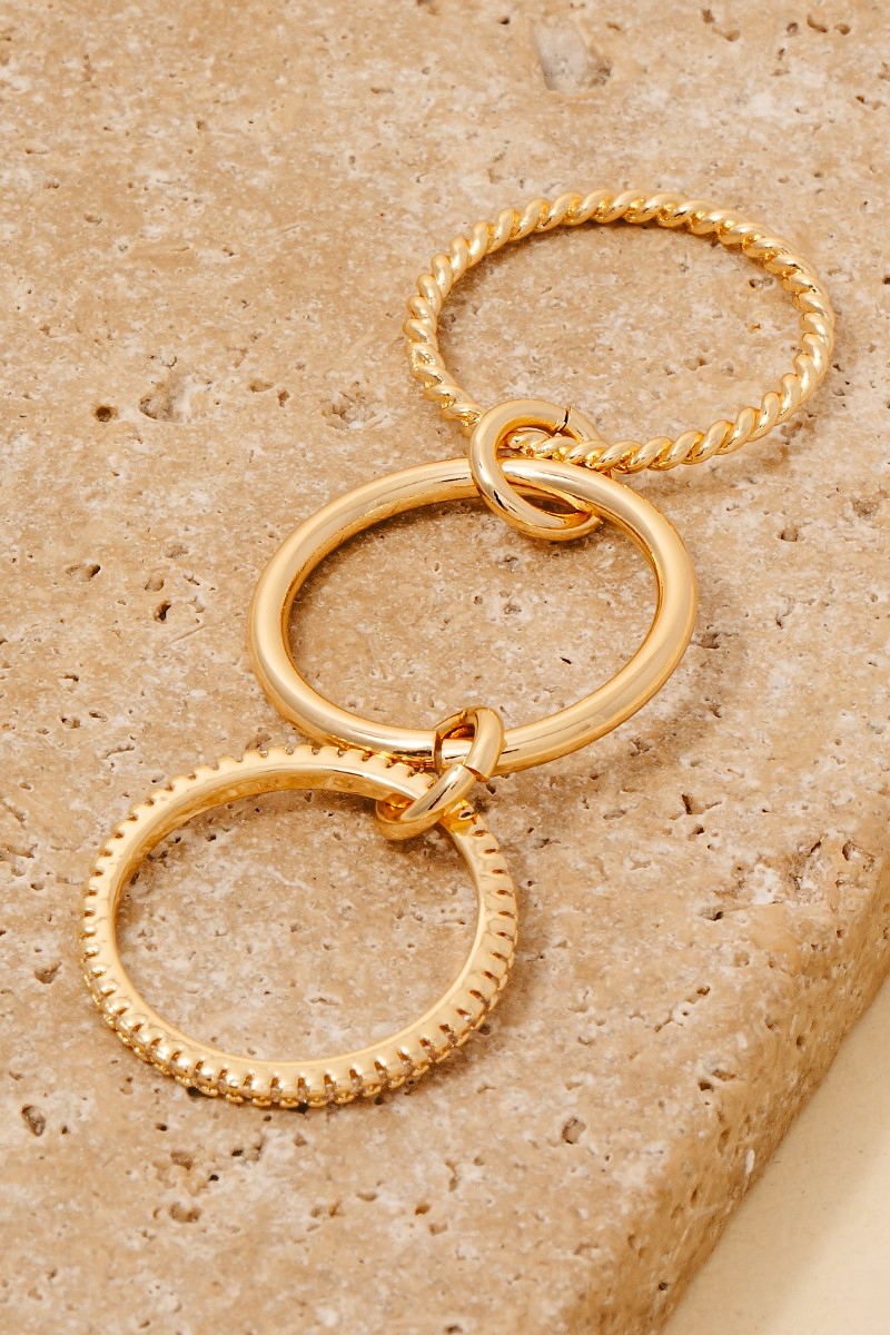 Perfect for any fashion-forward individual, this ring set shows off a distinctive gold dipped cubic zirconia studded layered linked band rings set design. Perfect for any occasion, this versatile ring set will enhance any outfit you wear. Available in G7, K7, X7. This item is sold in packs of 1.