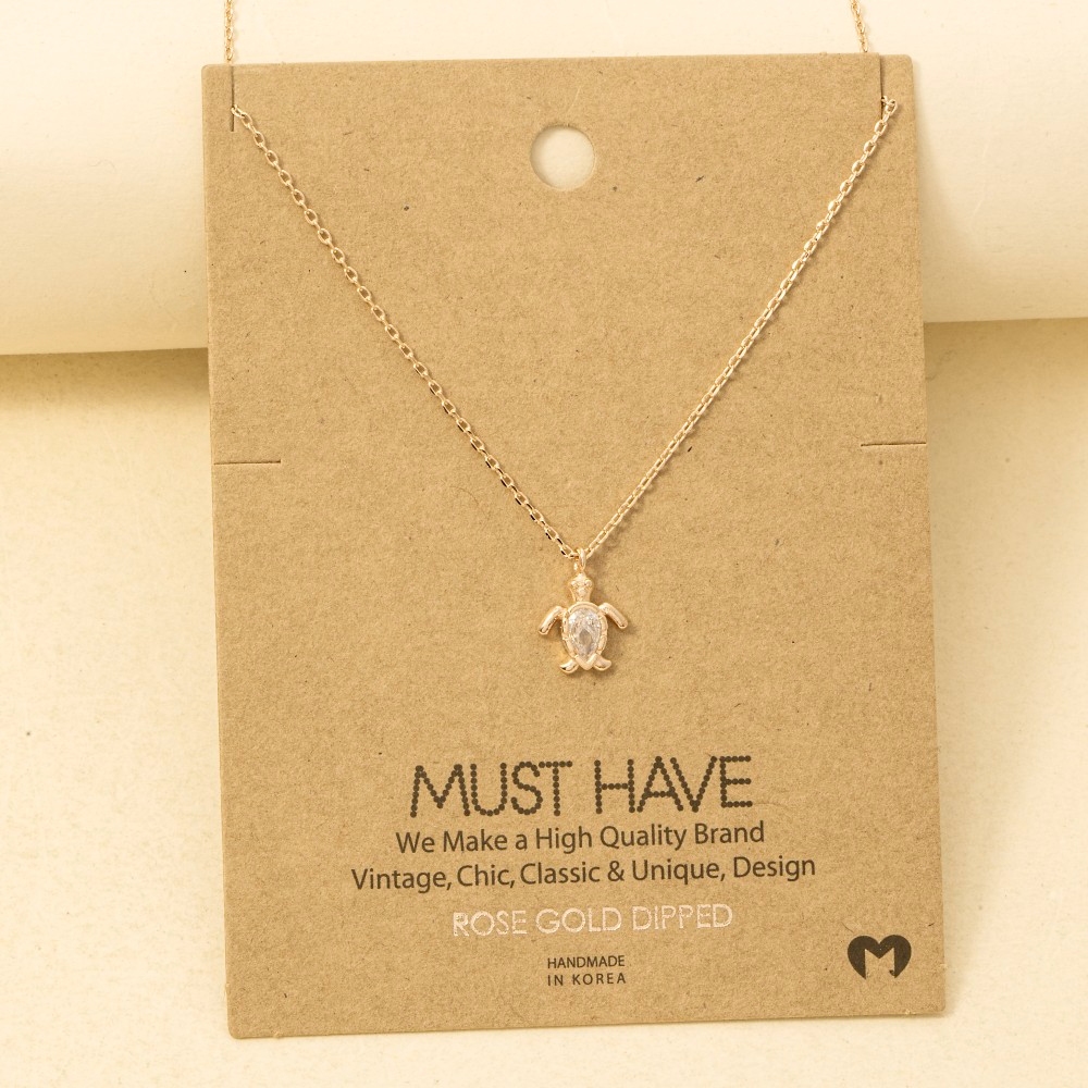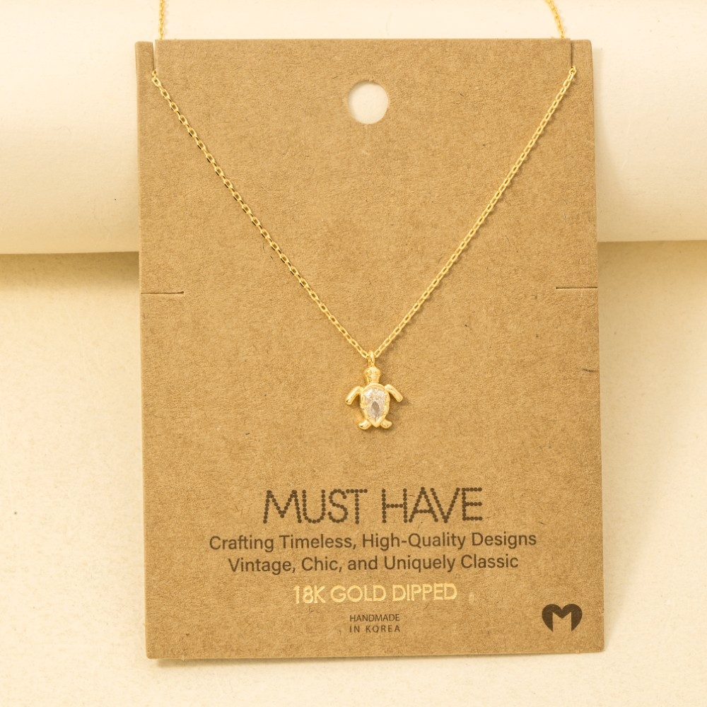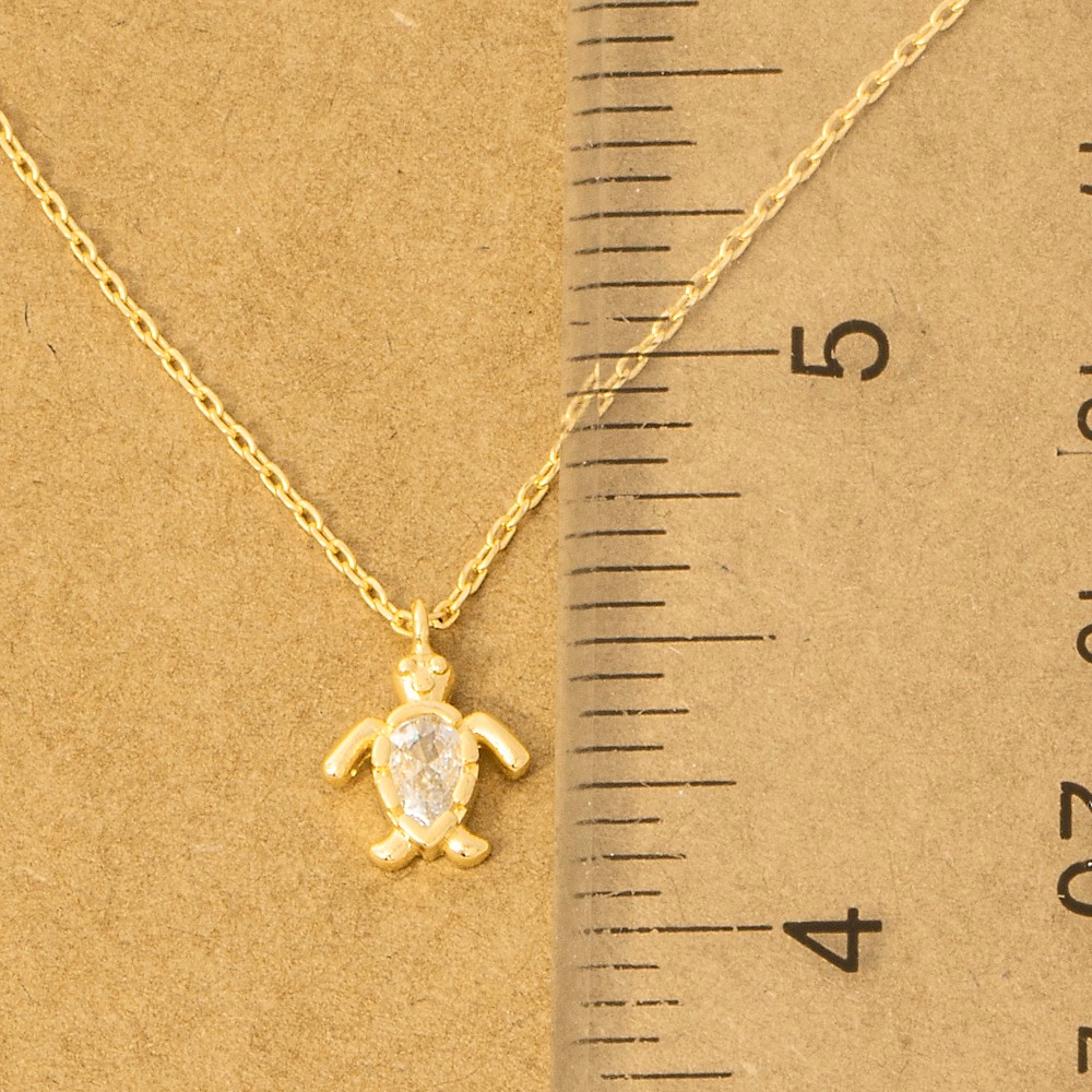 A timeless piece that you'll wear for years to come, this pendant necklace exudes a refined gold dipped cubic zirconia turtle design. The perfect way to elevate any outfit, this pendant necklace adds a touch of elegance and style. Available in G, S and R. This item is sold in packs of 12.