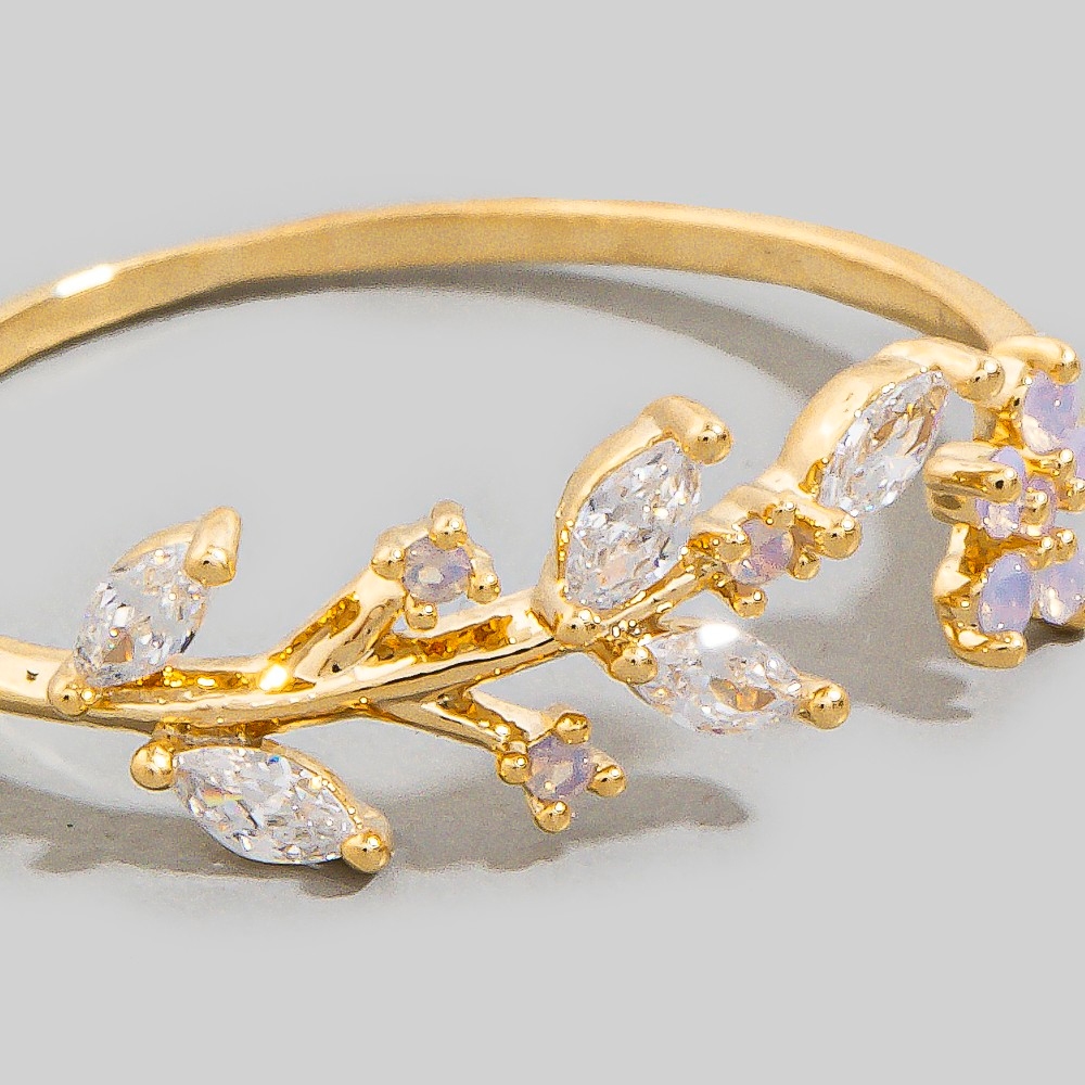 A bold and daring choice, perfect for those who want to stand out from the crowd, this ring embodies a sophisticated gold dipped dainty rhinestone leaf flower open design. Infuse elegance into your daily wardrobe with the versatile charm of this must-have ring. Available in G, R and S. This item is sold in packs of 1.