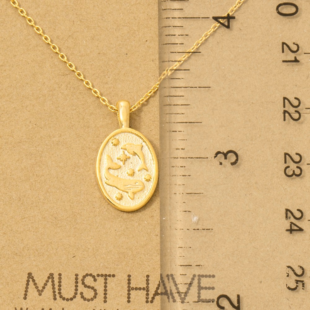 - Elevate any look, this trending necklace brings a one-of-a-kind gold dipped dolphin and whale oval pendant necklace design. Add some personality to your outfit with this stylish trending necklace. Available in G, R, S. This item is sold in packs of 1.