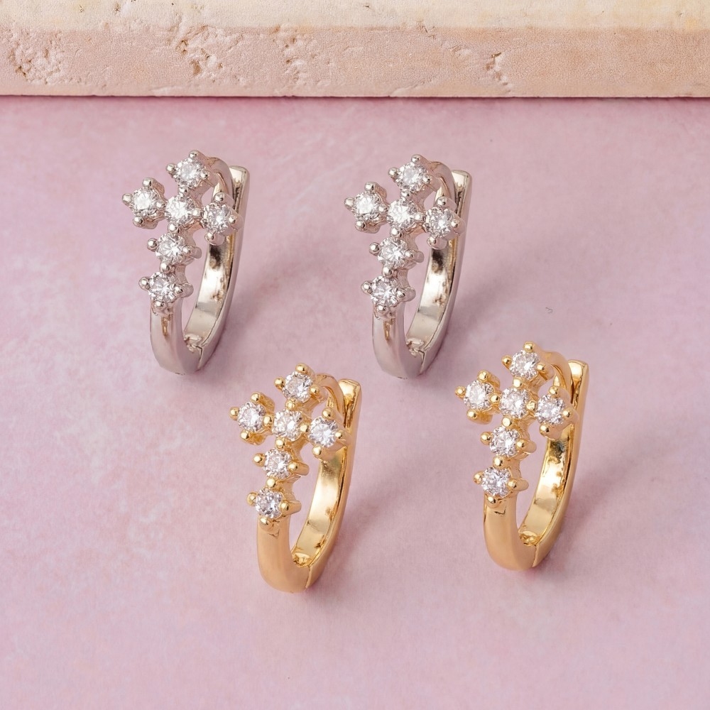 This pair of earrings is made with 80% Brass and 20% Cubic Zirconia.