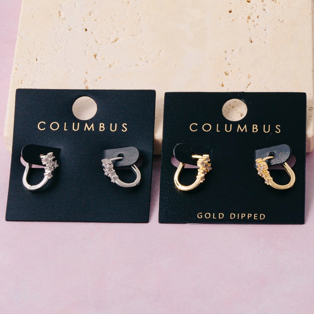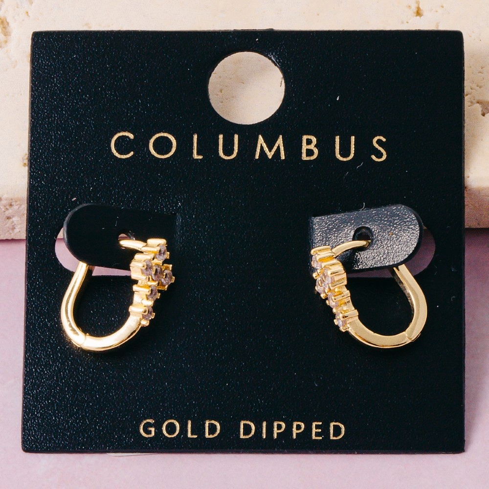 Perfect for any fashion-forward individual, this pair of earrings encompasses a grand gold dipped double crystal row huggie design. This pair of earrings is ideal for both casual and formal events, adding a touch of sophistication to any outfit. Available in 2. This item is sold in packs of 1.