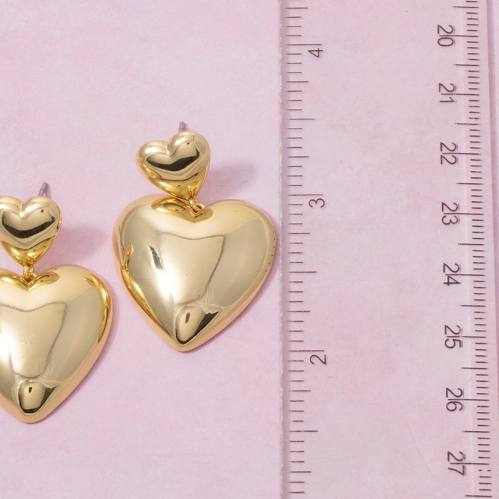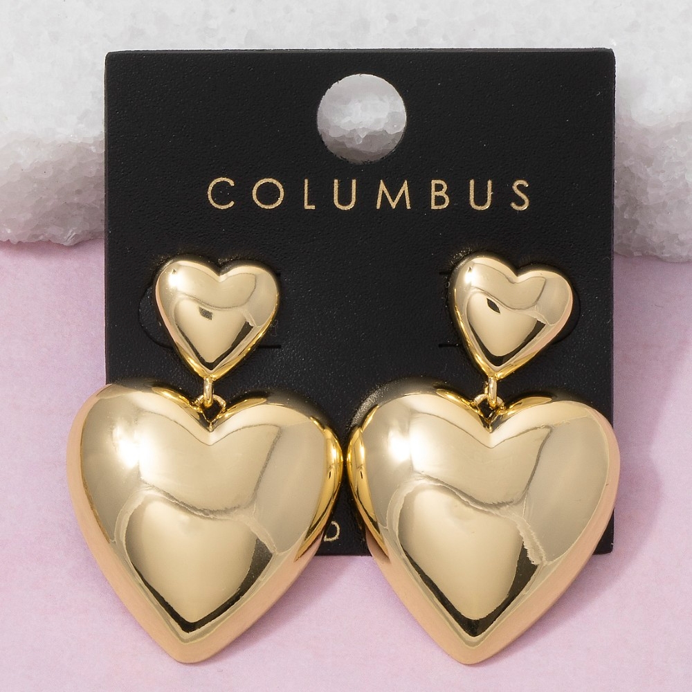 • A versatile piece that can be dressed up or down, this pair of dangle earrings includes a stunning gold dipped double heart stud design. A versatile pair of dangle earrings that's perfect for any occasion, adding a touch of elegance and style to any outfit. Available in GOLD. This item is sold in packs of 1.