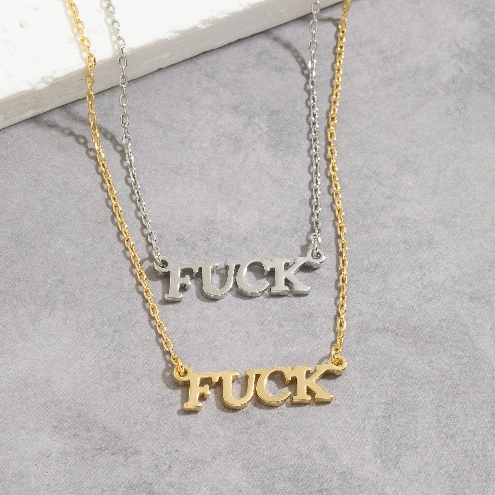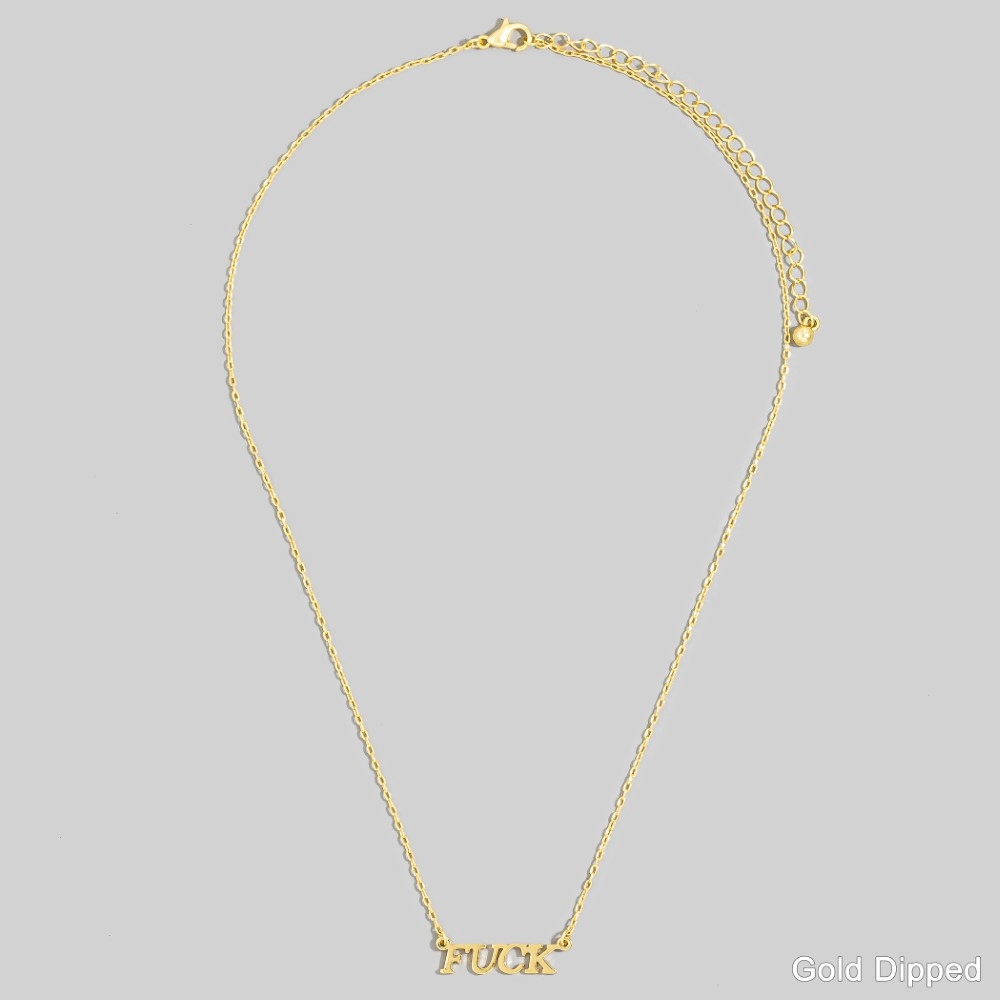 - The epitome of sophistication and style, this pendant necklace adds a distinctive gold dipped fuck letter design. A must-have pendant necklace that effortlessly enhances your style, no matter the occasion. This item is sold in packs of 12.
