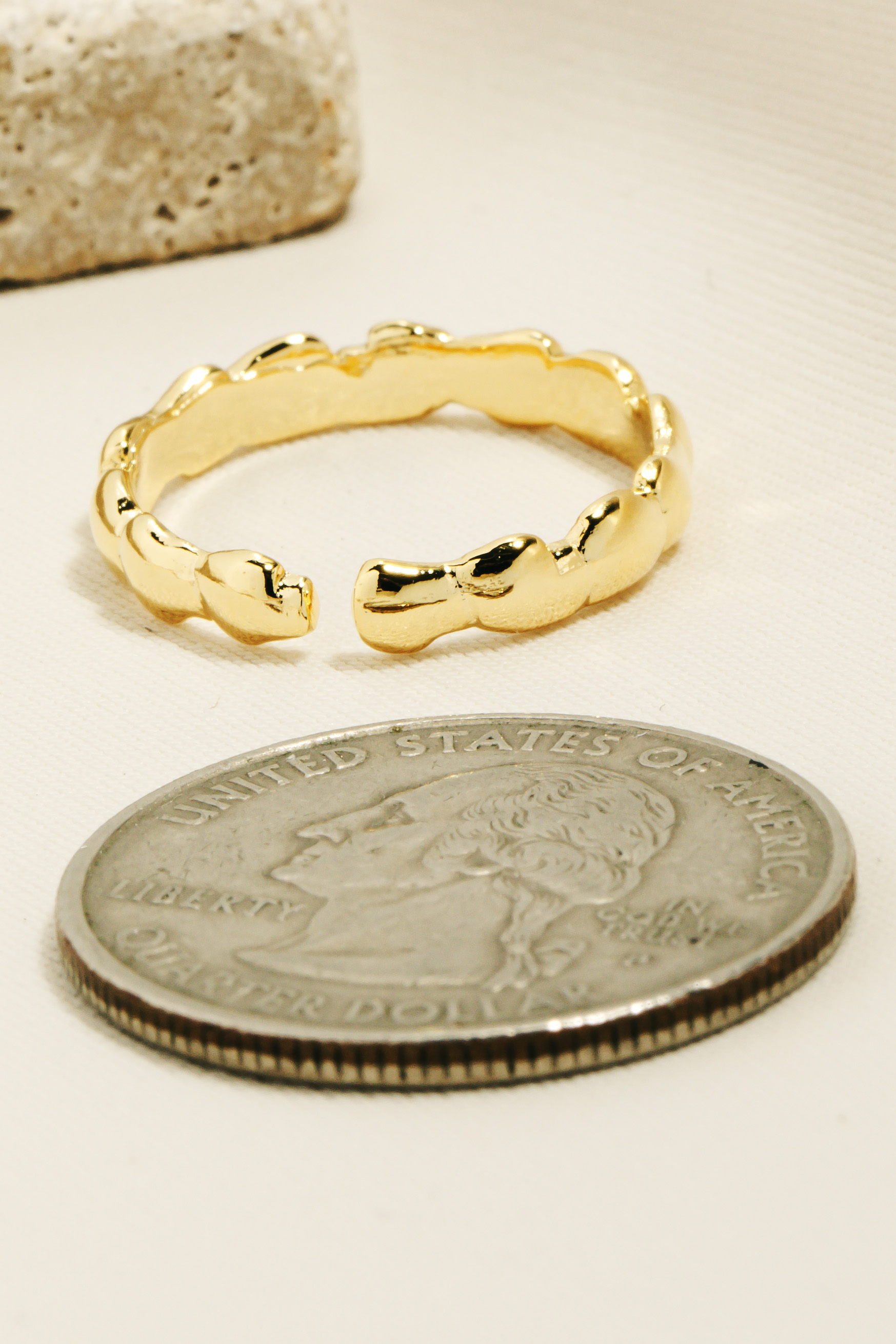 Add some edge to your wardrobe, this ring showcases an alluring gold dipped gold dipped textured open band design. This ring is the perfect way to add a touch of elegance to any outfit. Available in G and S. This item is sold in packs of 1.