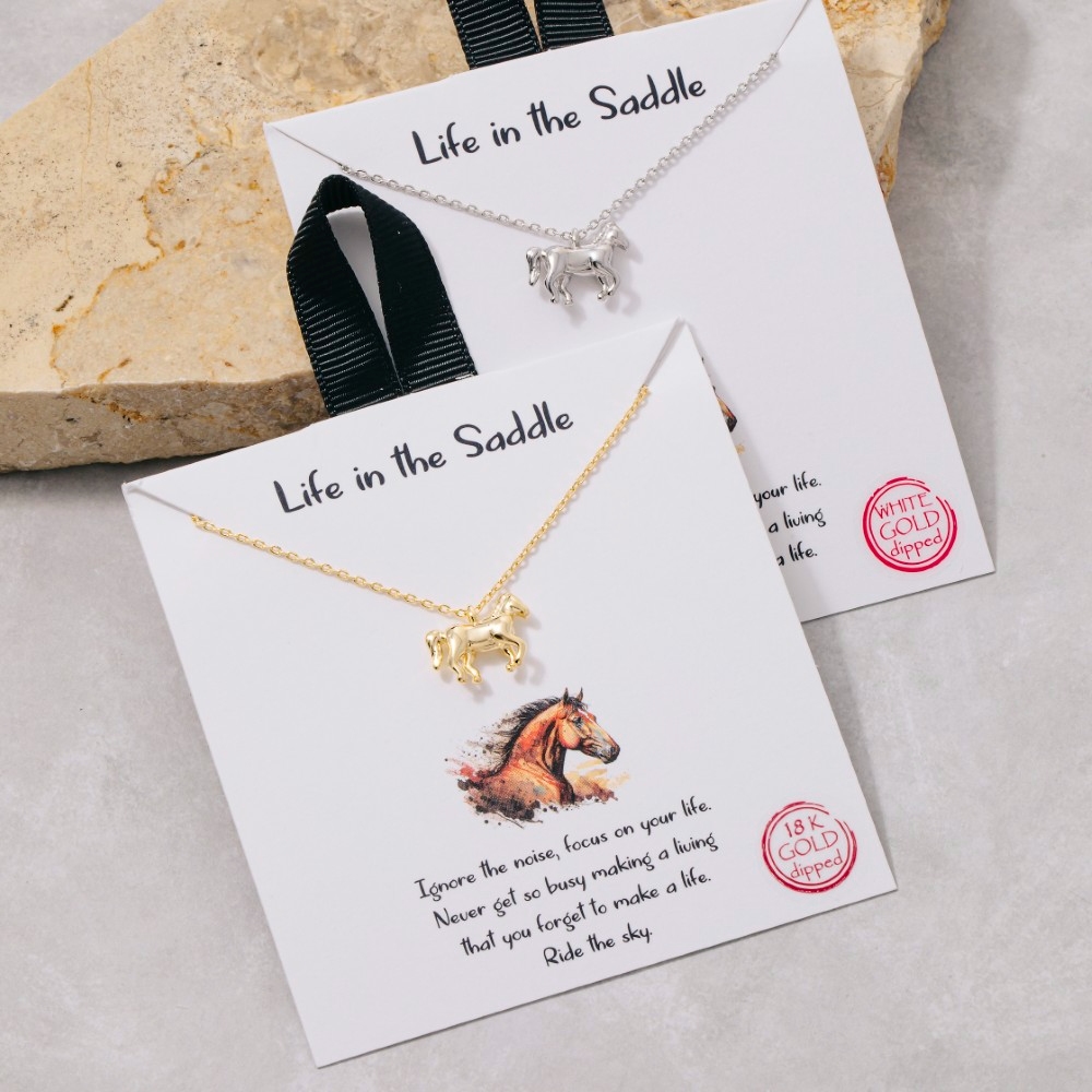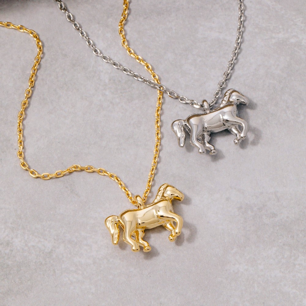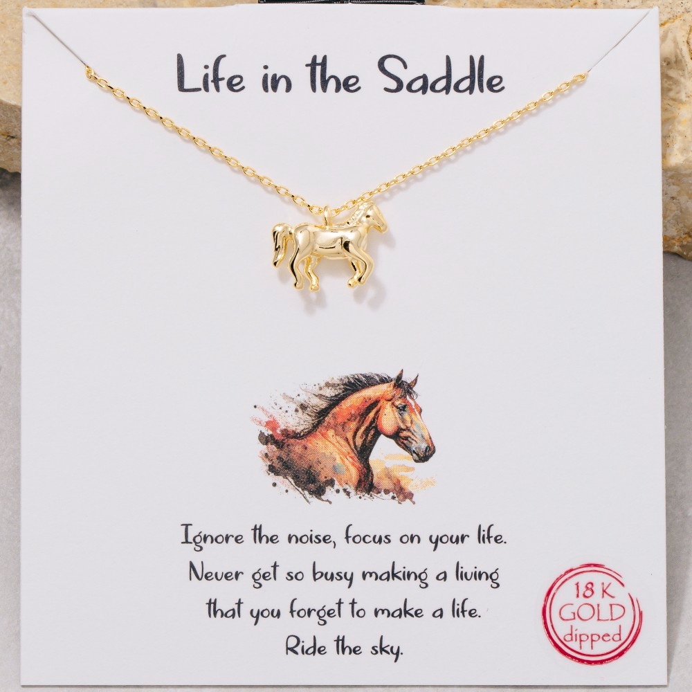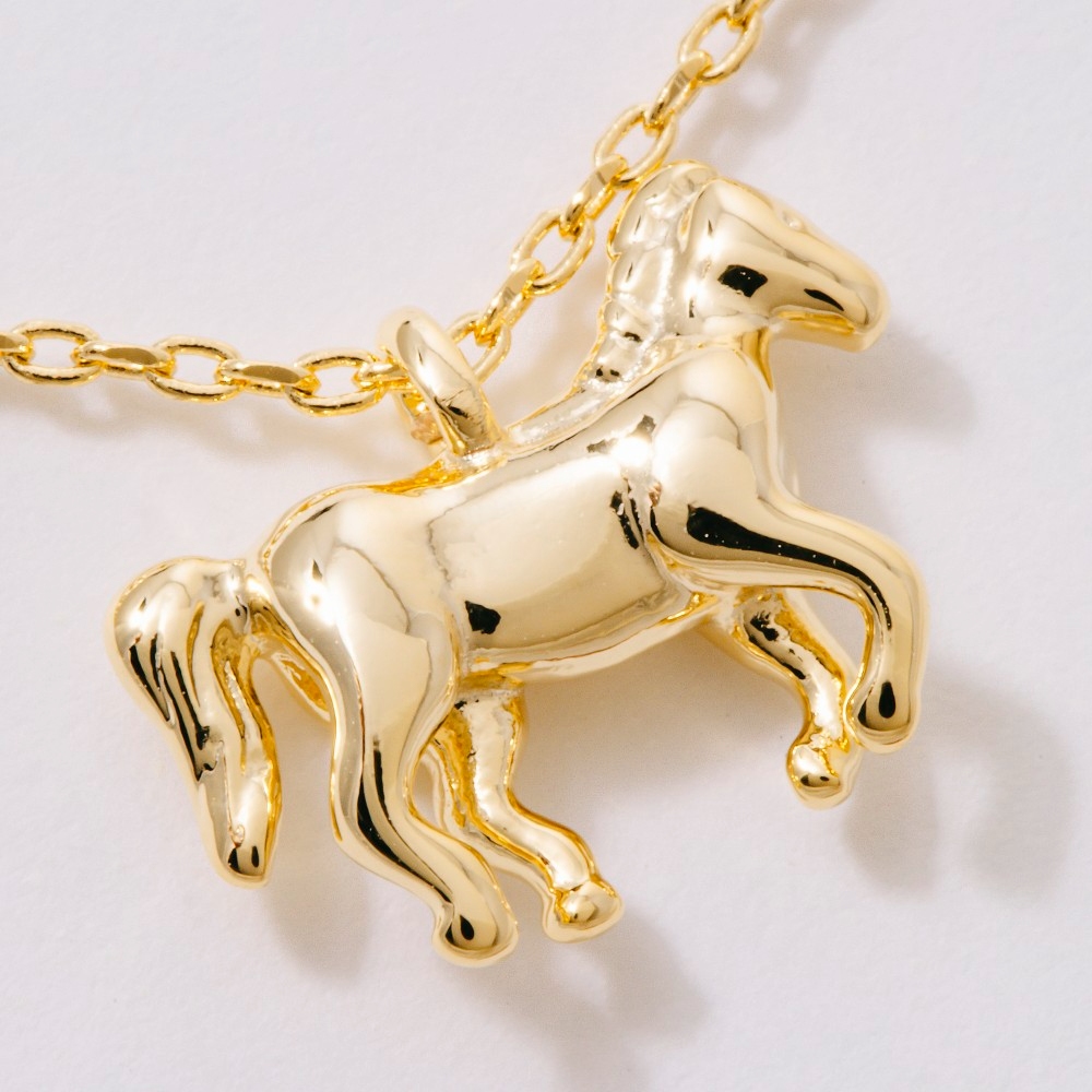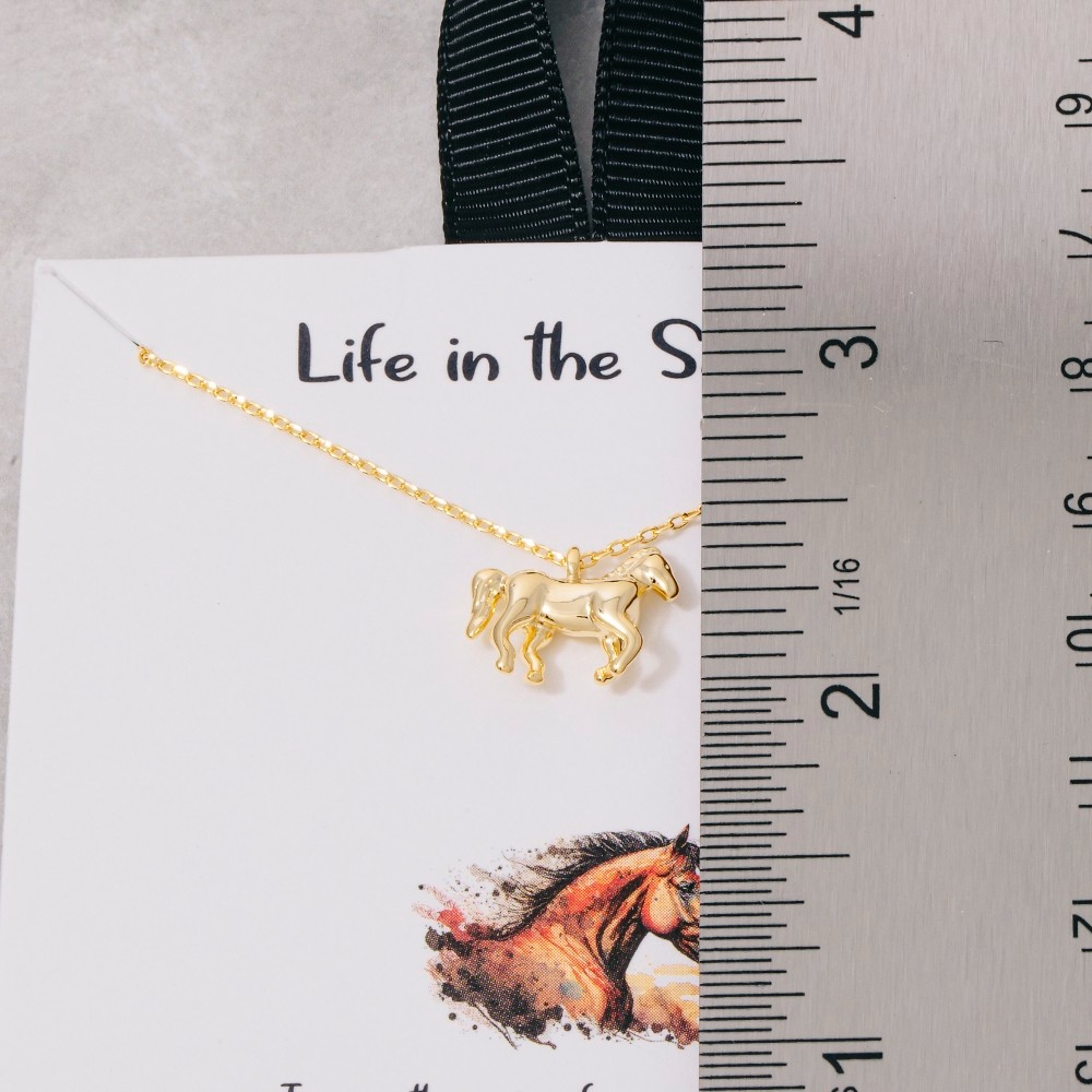 • The perfect way to add some sparkle to your outfit, this pendant necklace features an exceptional gold dipped horse design. This item is perfect for adding some color and vibrancy to any outfit. Available in GD, RH. This item is sold in packs of 1.