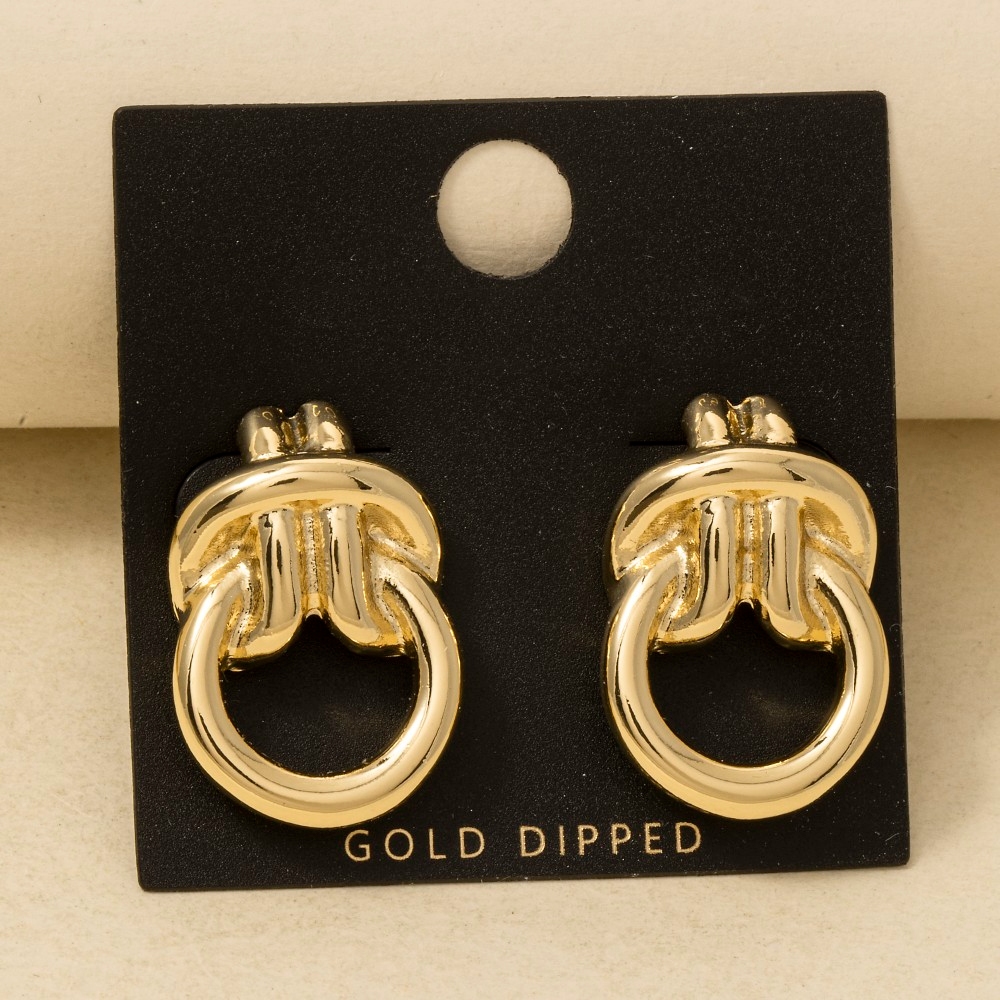 - Effortlessly elevate your style, this pair of drop earrings showcases an alluring gold dipped intricate knot design. A perfect addition to your wardrobe that effortlessly enhances your style. Available in GOLD. This item is sold in packs of 1.