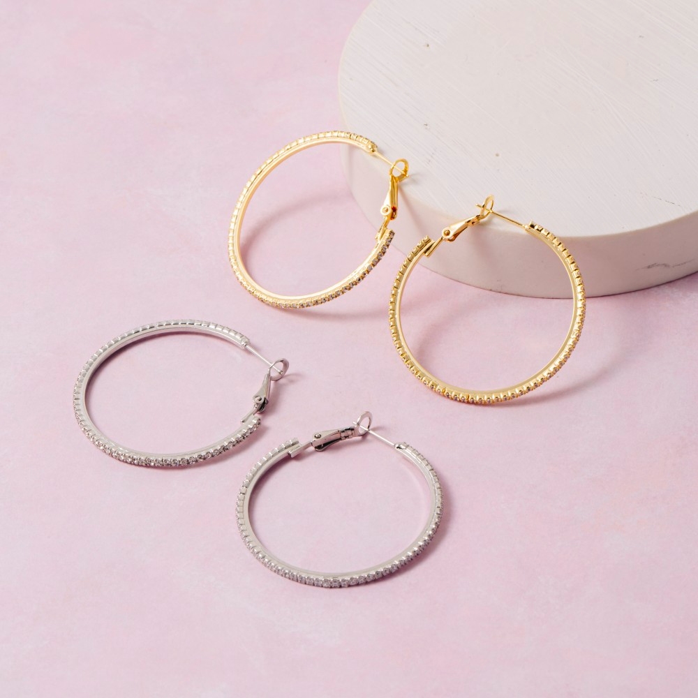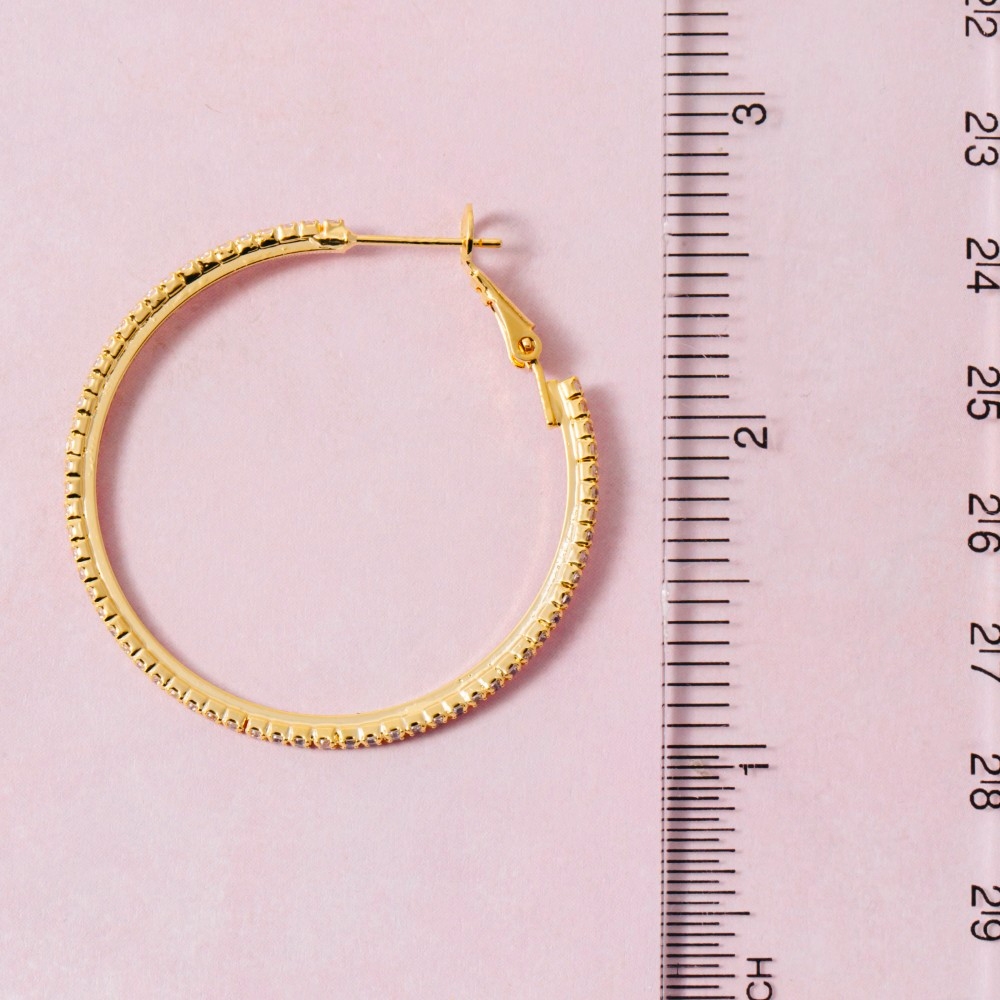 A true work of art, this pair of hoop earrings features an exceptional gold dipped large cubic zirconia inside-out design. This pair of hoop earrings is ideal for both casual and formal events, adding a touch of sophistication to any outfit. Available in GD, WG. This item is sold in packs of 1.