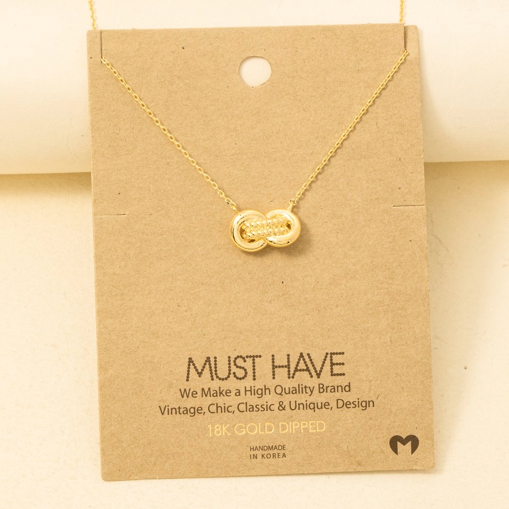 • Stay ahead of the fashion curve, this trending necklace carries a charming gold dipped linked hoop charm necklace design. This trending necklace is an effortless way to add some personality to your outfit. Available in G. This item is sold in packs of 1.