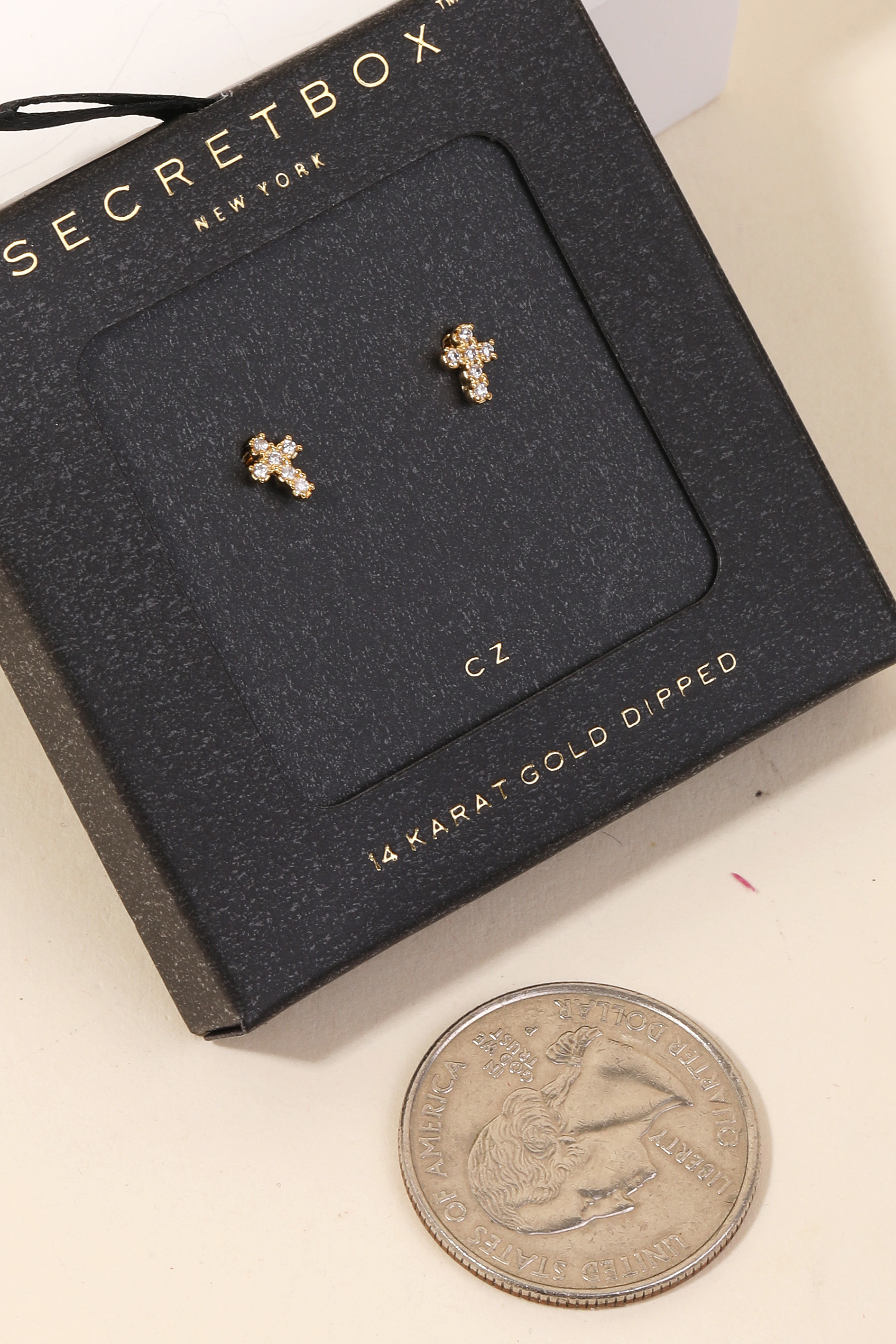 A versatile and stylish addition to any wardrobe, this pair of stud earrings emanates an elegant gold dipped mini cross stud earrings design. Perfect for dressing up or down, this versatile accessory adds a touch of sophistication to any look. Available in GD and WG. This item is sold in packs of 2.