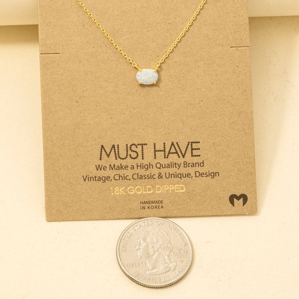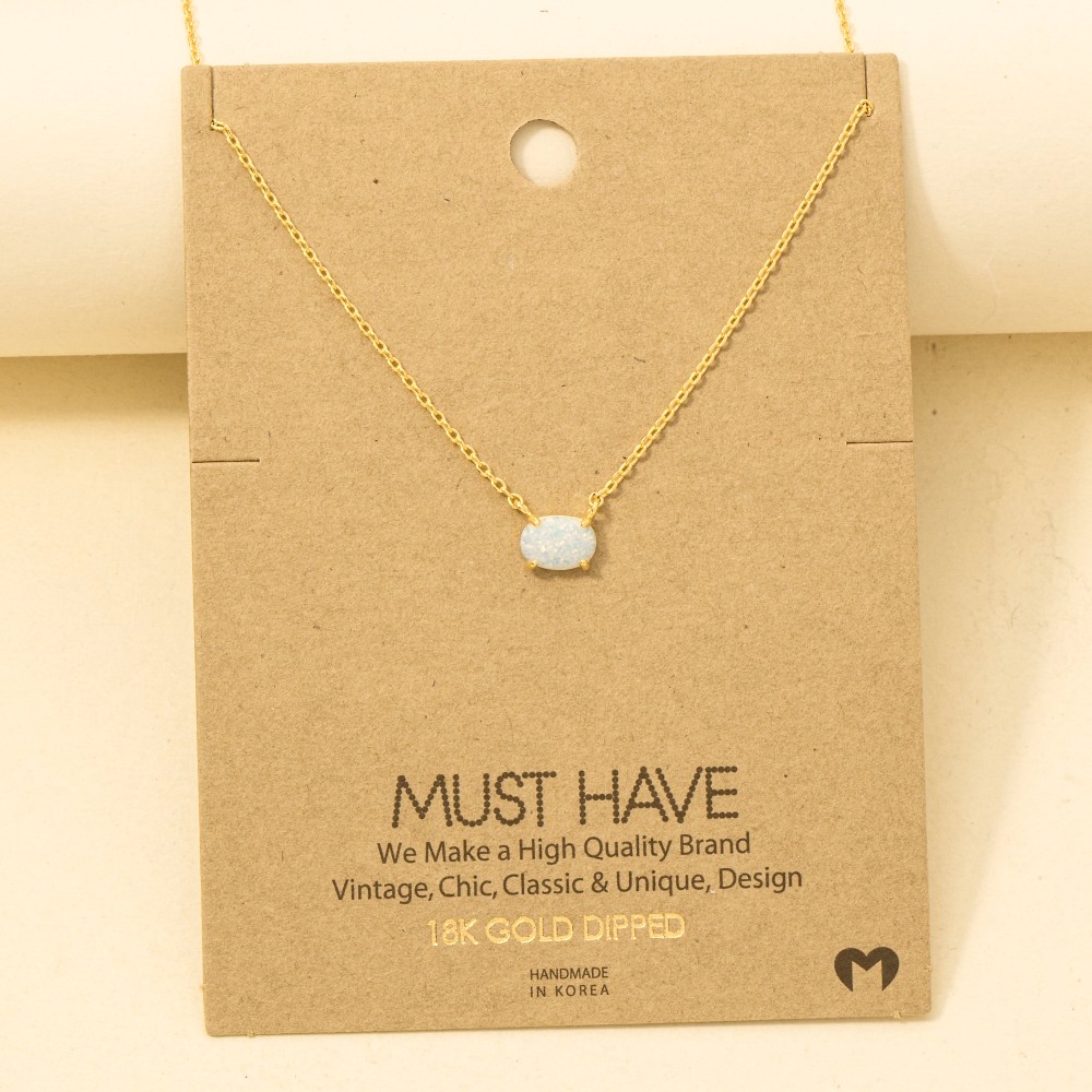 Make a bold statement, this trending necklace includes a stunning gold dipped oval opal pendant necklace design. Add a dash of sophistication to your look with this versatile trending necklace, a must-have for fashion enthusiasts. Available in G, R, S and PK. This item is sold in packs of 1.