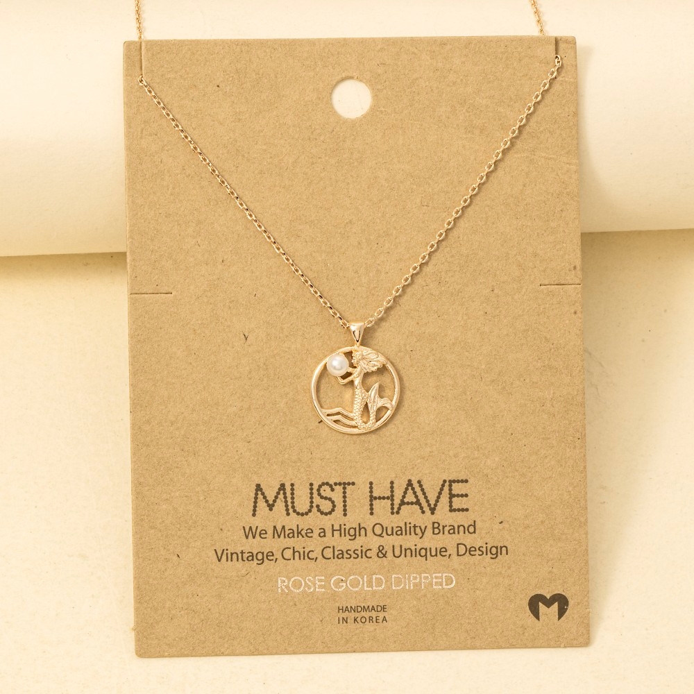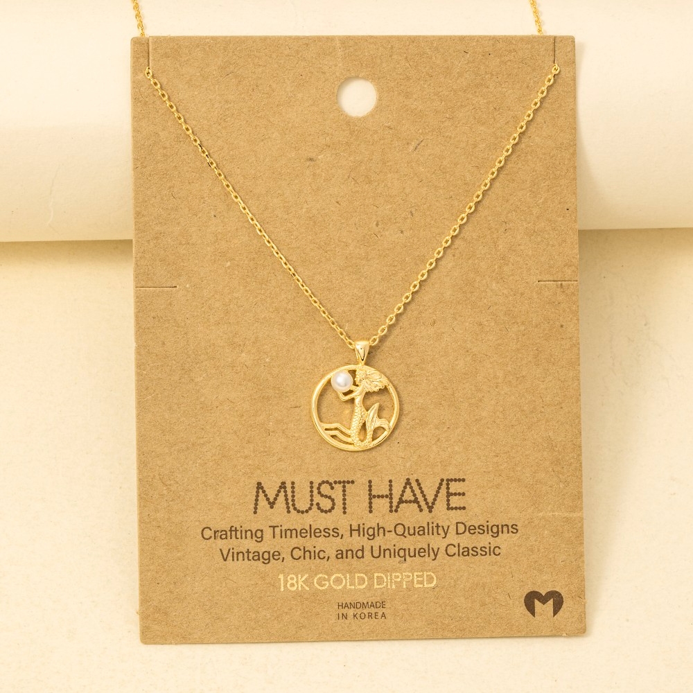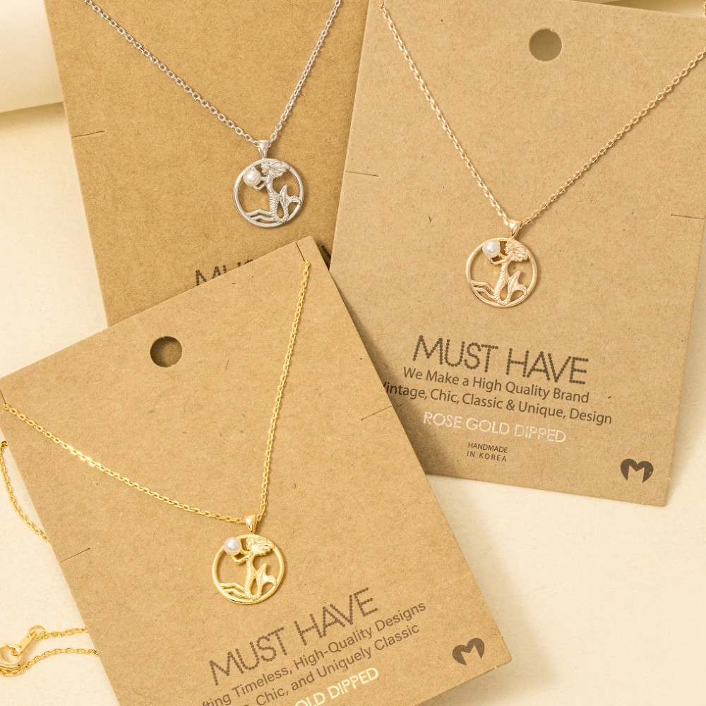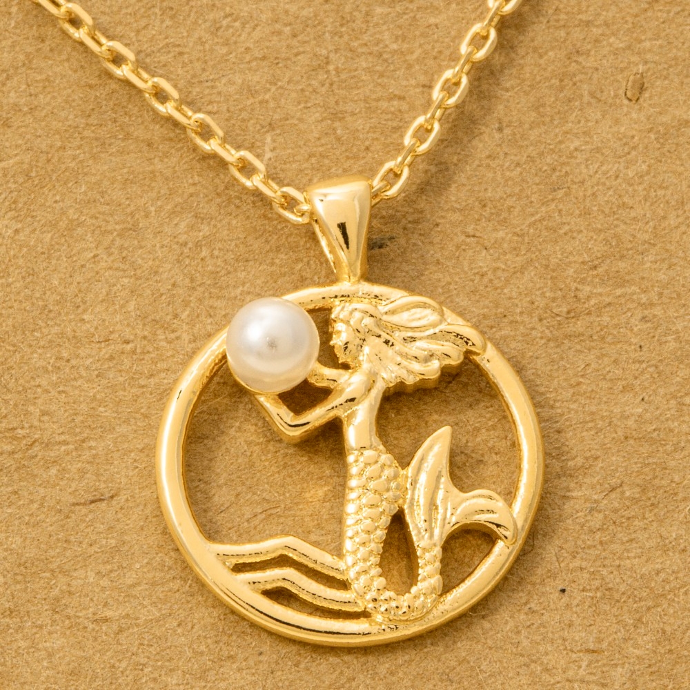 - A contemporary masterpiece, this necklace includes a stunning gold dipped pearl mermaid pendant design. Infuse a hint of luxury into your daily attire with this versatile necklace, a must-have for those who appreciate timeless elegance. Available in G, R, S. This item is sold in packs of 1.
