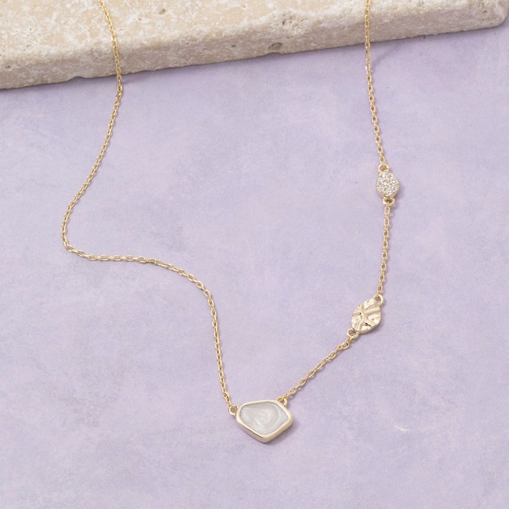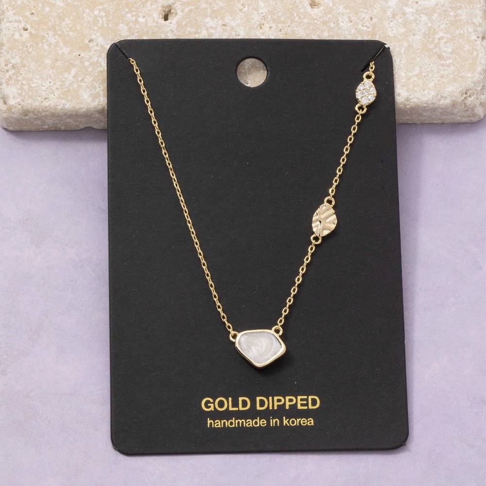 This season's hottest pendant necklace, this pendant necklace evokes a captivating gold dipped pearl stone cubic zirconia charm design. This pendant necklace is the perfect way to add a touch of elegance to any outfit. This item is sold in packs of 12.