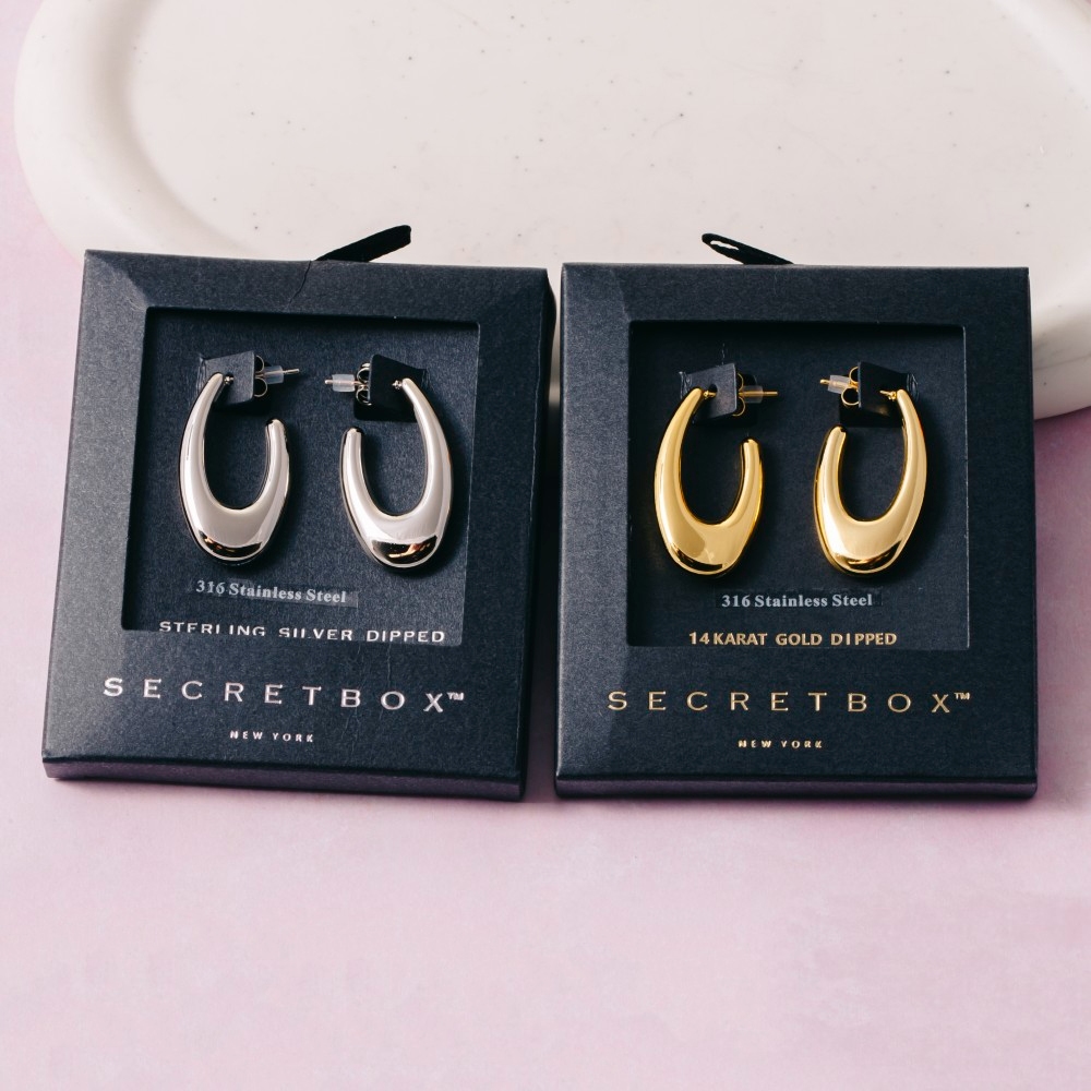 This pair of hoop earrings is made with 100% Stainless Steel.