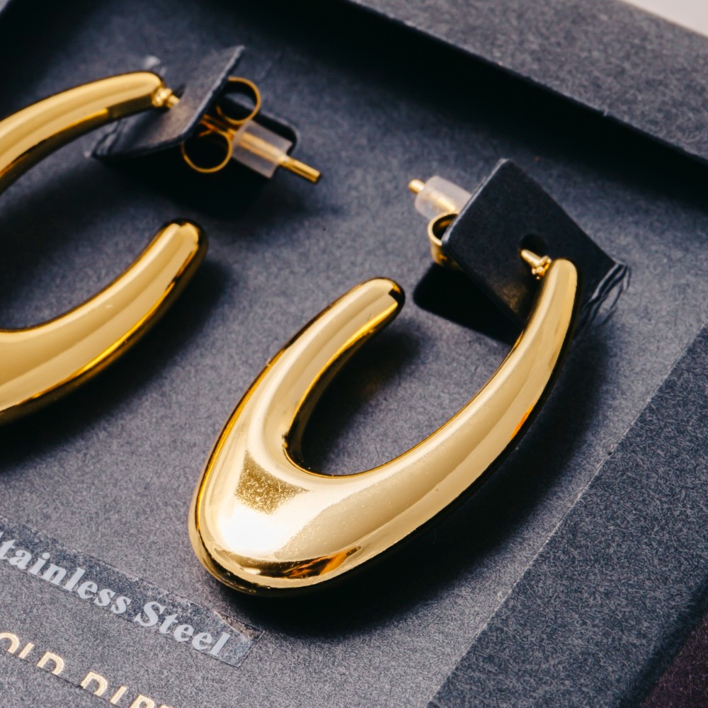 Perfect for any fashion-forward individual, this pair of hoop earrings offers a remarkable gold dipped puffy oval design. This item is ideal for those who want to add some personality to their wardrobe without being too bold. Available in GD, RH. This item is sold in packs of 1.