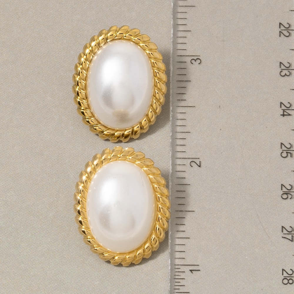 • A timeless piece that will never go out of style, this pair of stud earrings flaunts a luxurious gold dipped rope edge oval pearl design. This pair of stud earrings is the perfect way to add a touch of elegance to any outfit. Available in G. This item is sold in packs of 1.