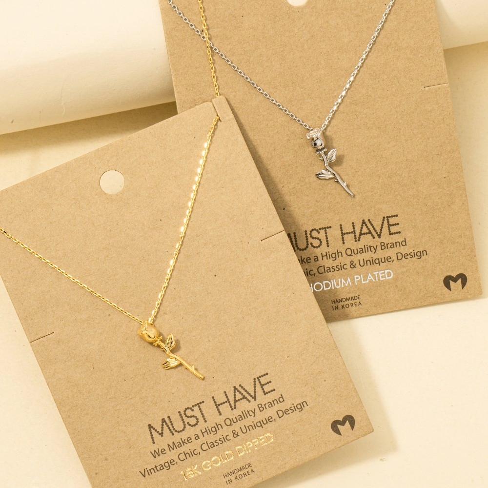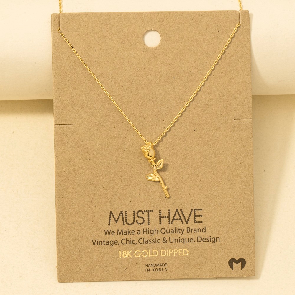 A stunning addition to any jewelry collection, this trending necklace possesses a fine gold dipped rose pendant necklace design. The perfect trending necklace for completing any outfit, whether you're dressing up or keeping it casual. Available in G, S and R. This item is sold in packs of 1.