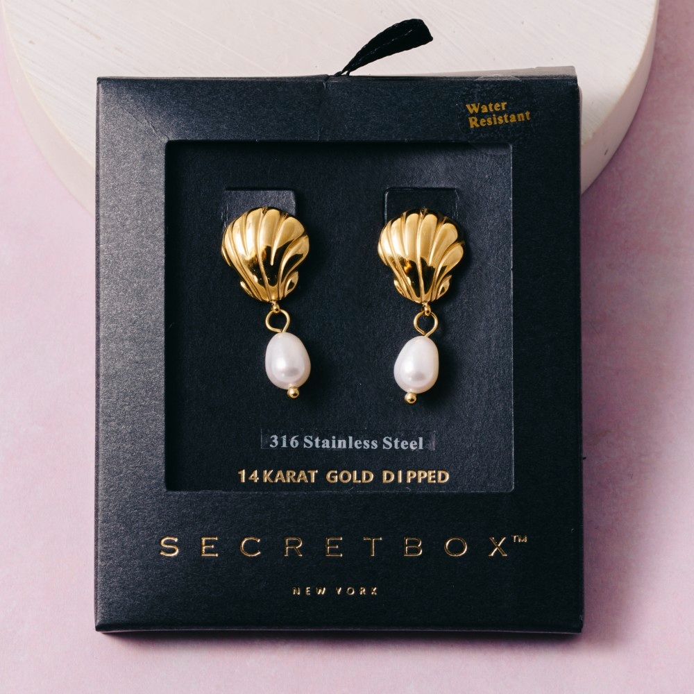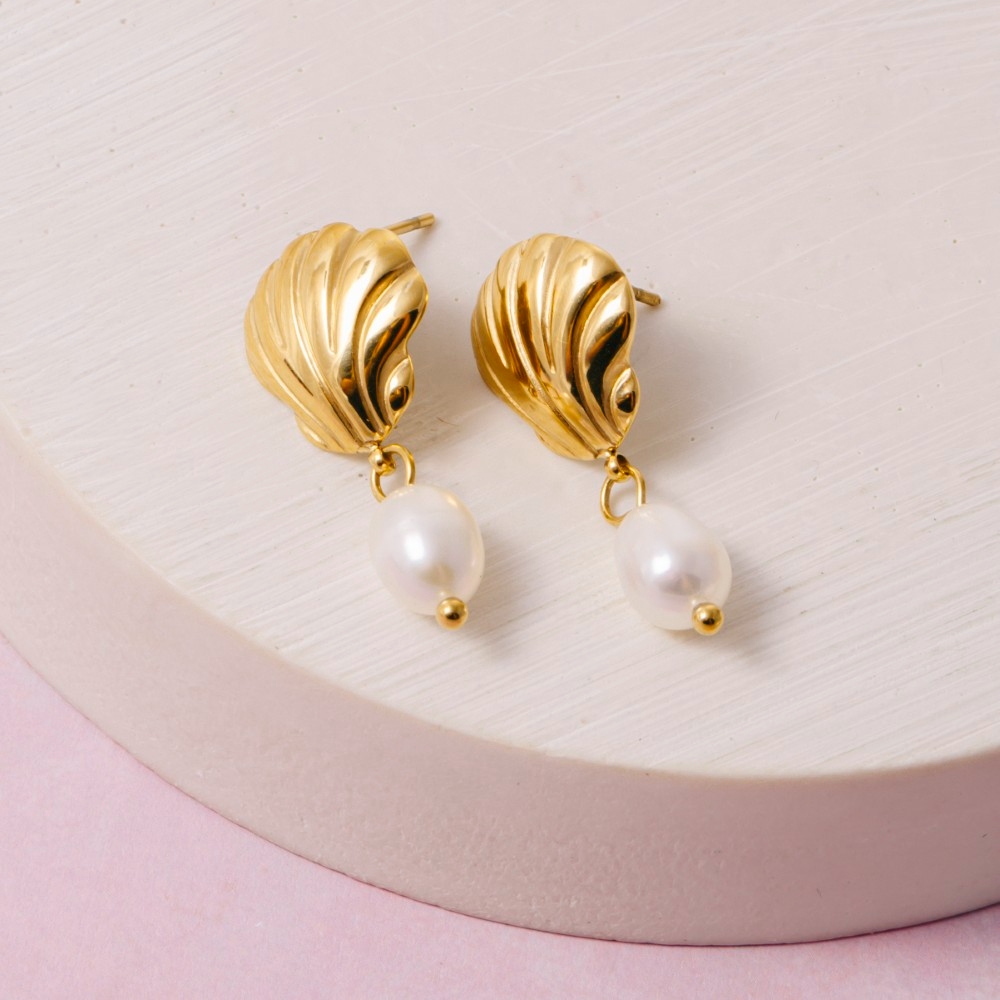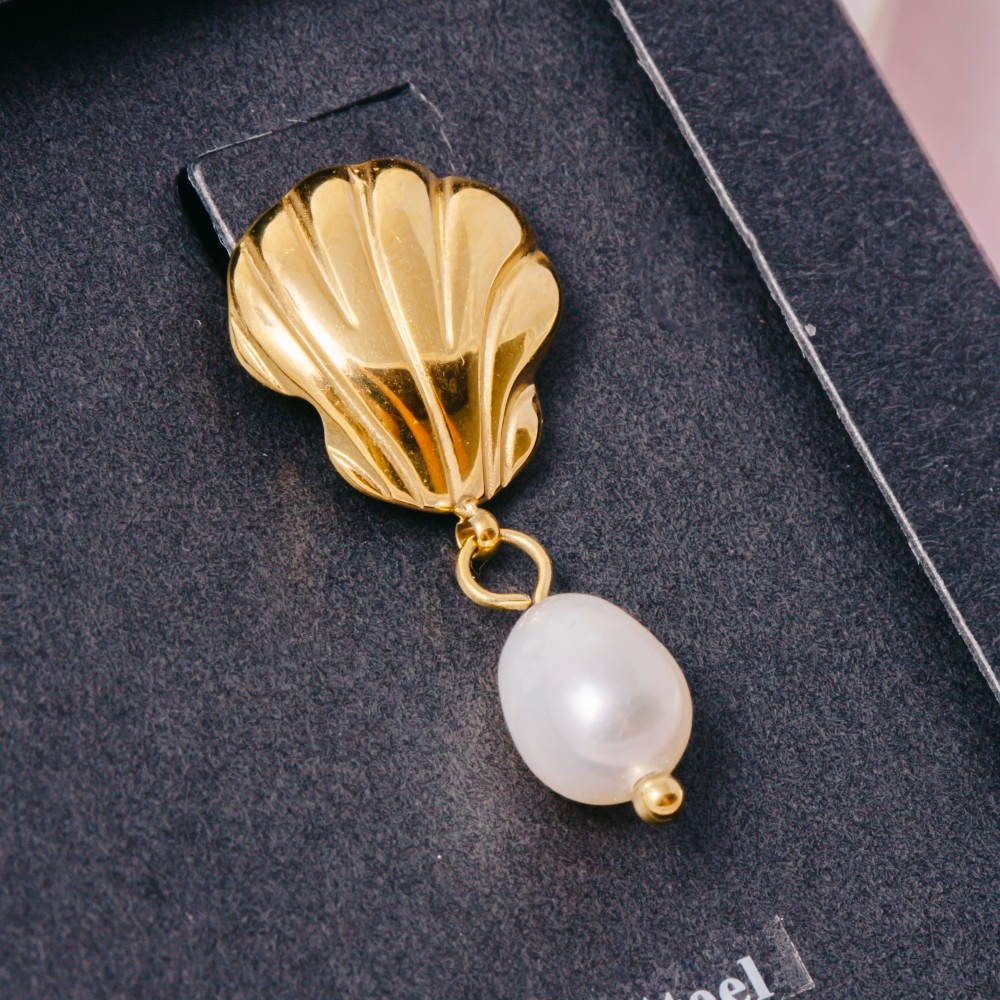 Elevate any look, this pair of drop earrings emanates an elegant gold dipped scallop shell stud & pearl design. Add a dash of sophistication to your look with this versatile pair of drop earrings, a must-have for fashion enthusiasts. Available in GD. This item is sold in packs of 1.