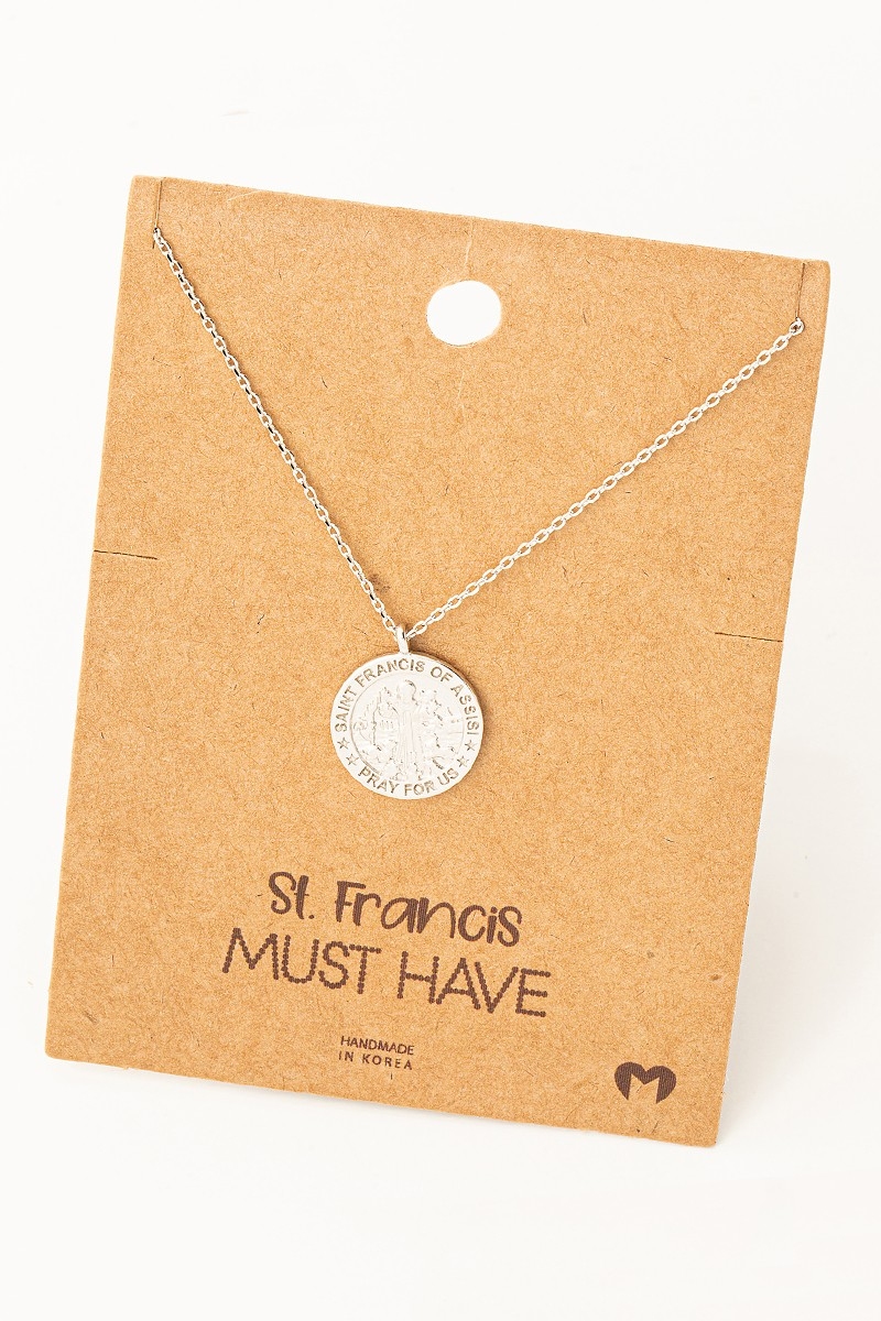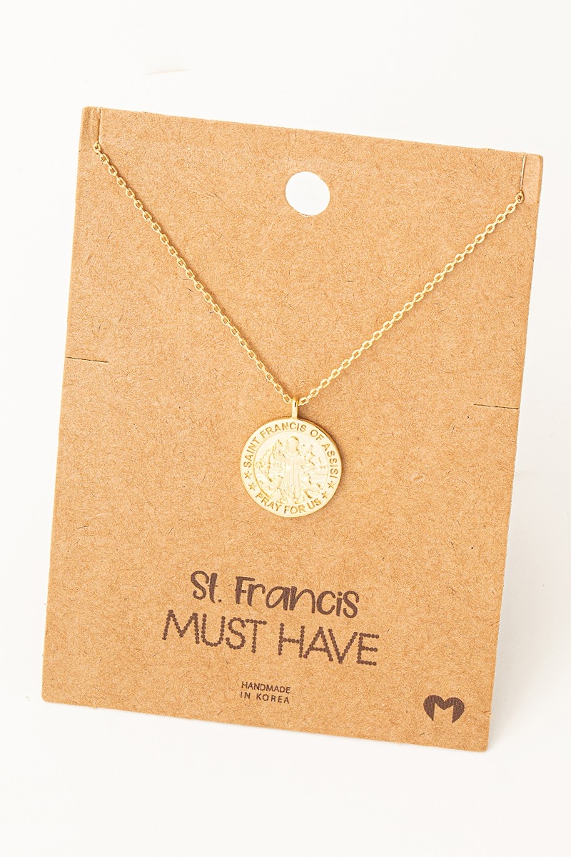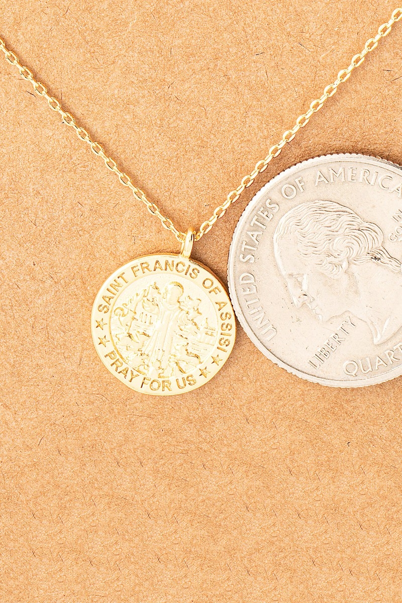 A timeless piece that will never go out of style, this trending necklace offers a remarkable gold dipped st francis coin pendant necklace design. Transform your outfit from ordinary to extraordinary with the touch of elegance provided by this versatile trending necklace. Available in G, S. This item is sold in packs of 1.