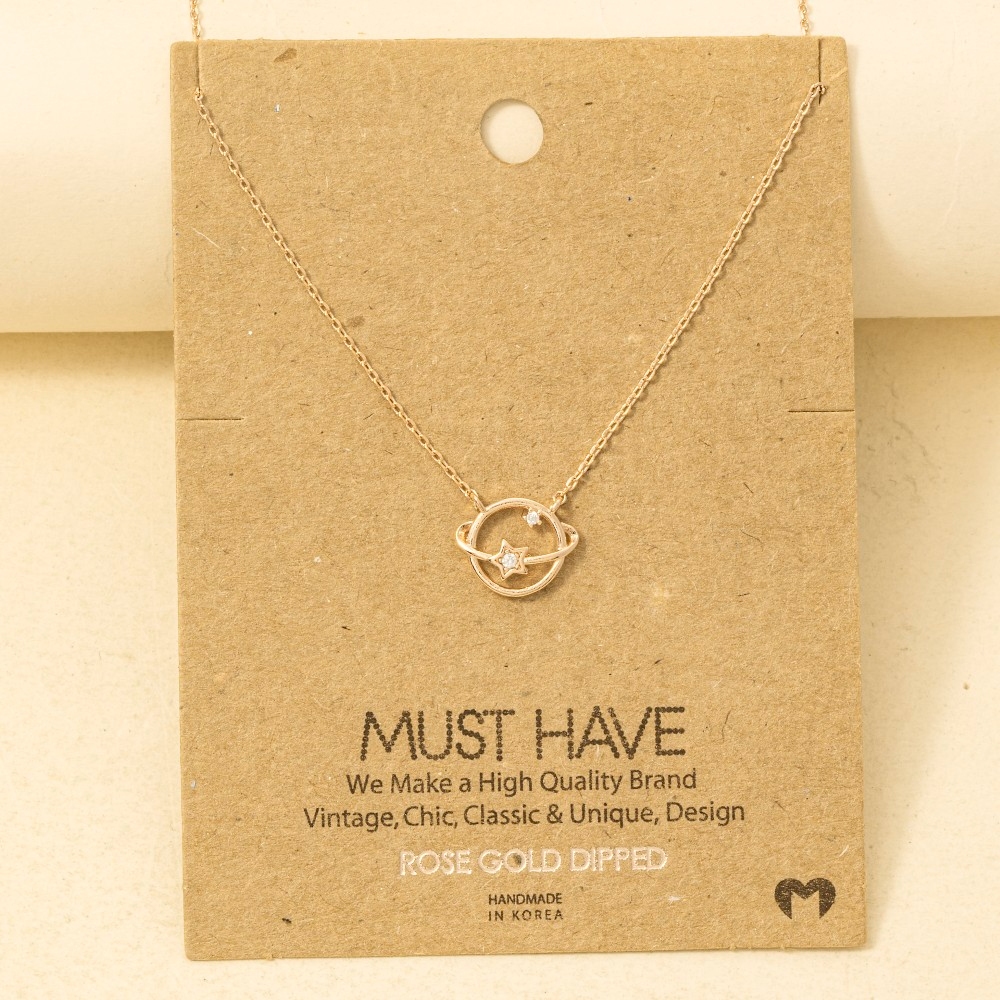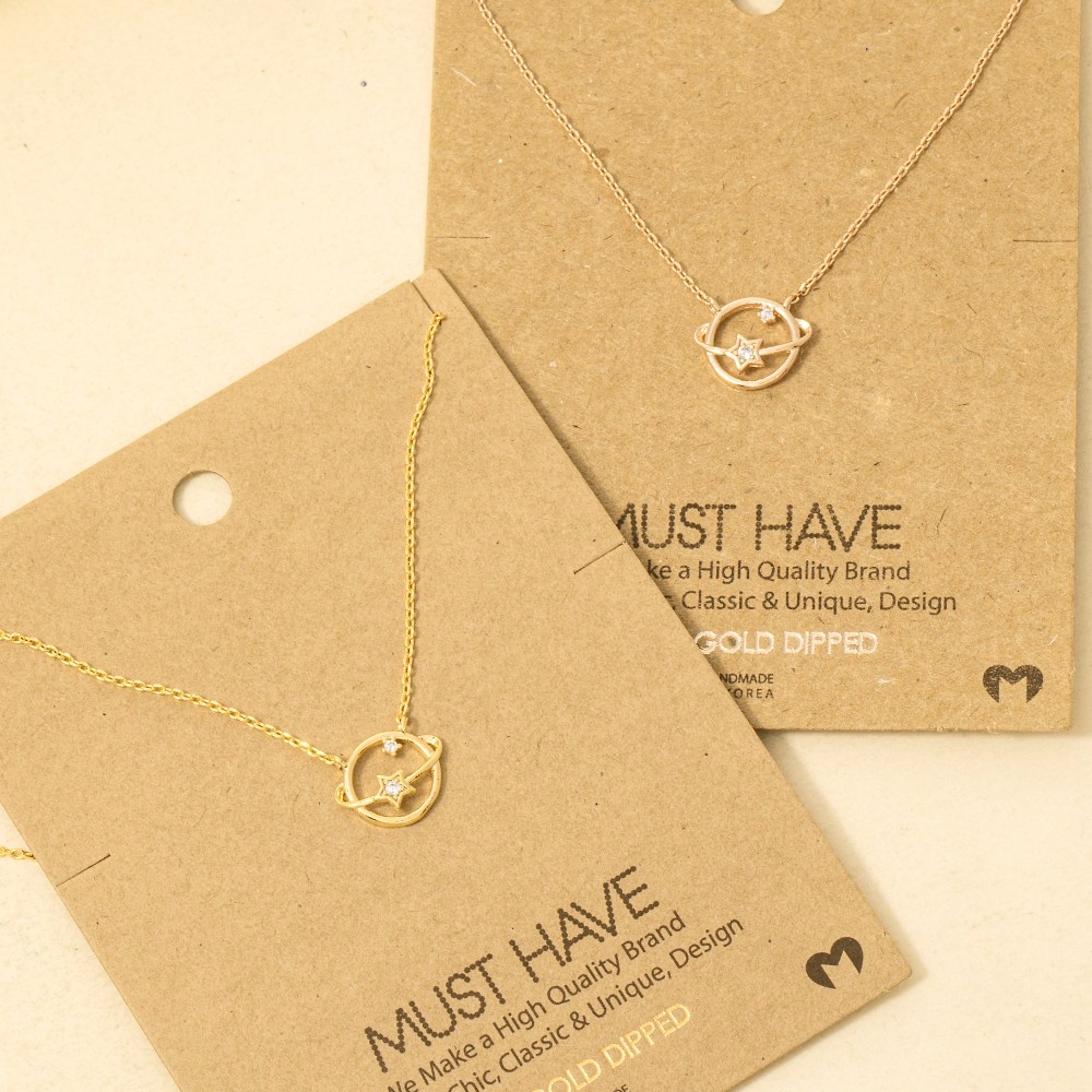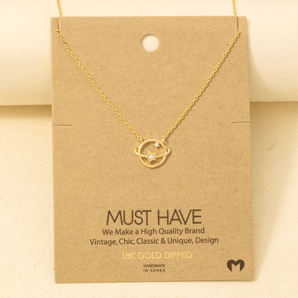 • Bold, daring, and endlessly stylish, this trending necklace showcases an alluring gold dipped studded star orbit pendant necklace design. Infuse your ensemble with a touch of sophistication using this versatile trending necklace, a game-changer in the world of fashion. Available in G, R and S. This item is sold in packs of 1.