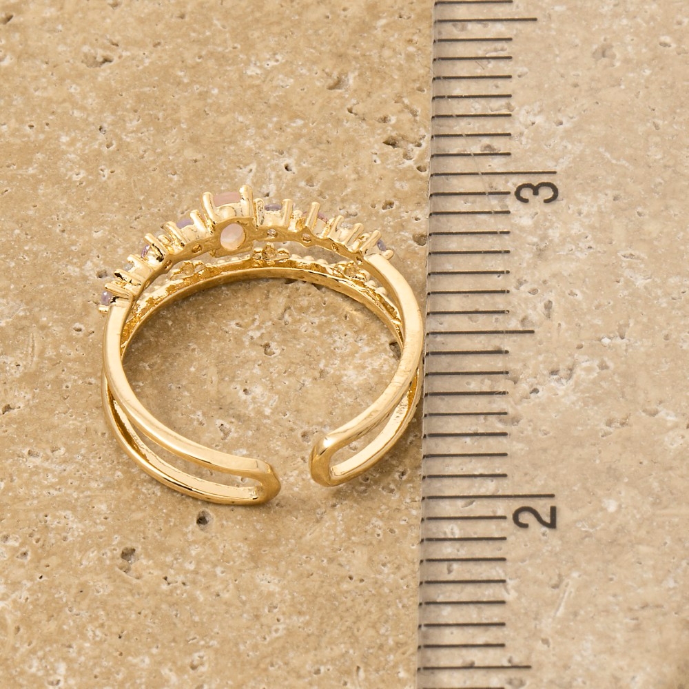 A versatile and stylish addition to any wardrobe, this ring flaunts a luxurious two row cubic zirconia studded gold dipped design. This ring is ideal for both casual and formal events, adding a touch of sophistication to any outfit. Available in G. This item is sold in packs of 1.