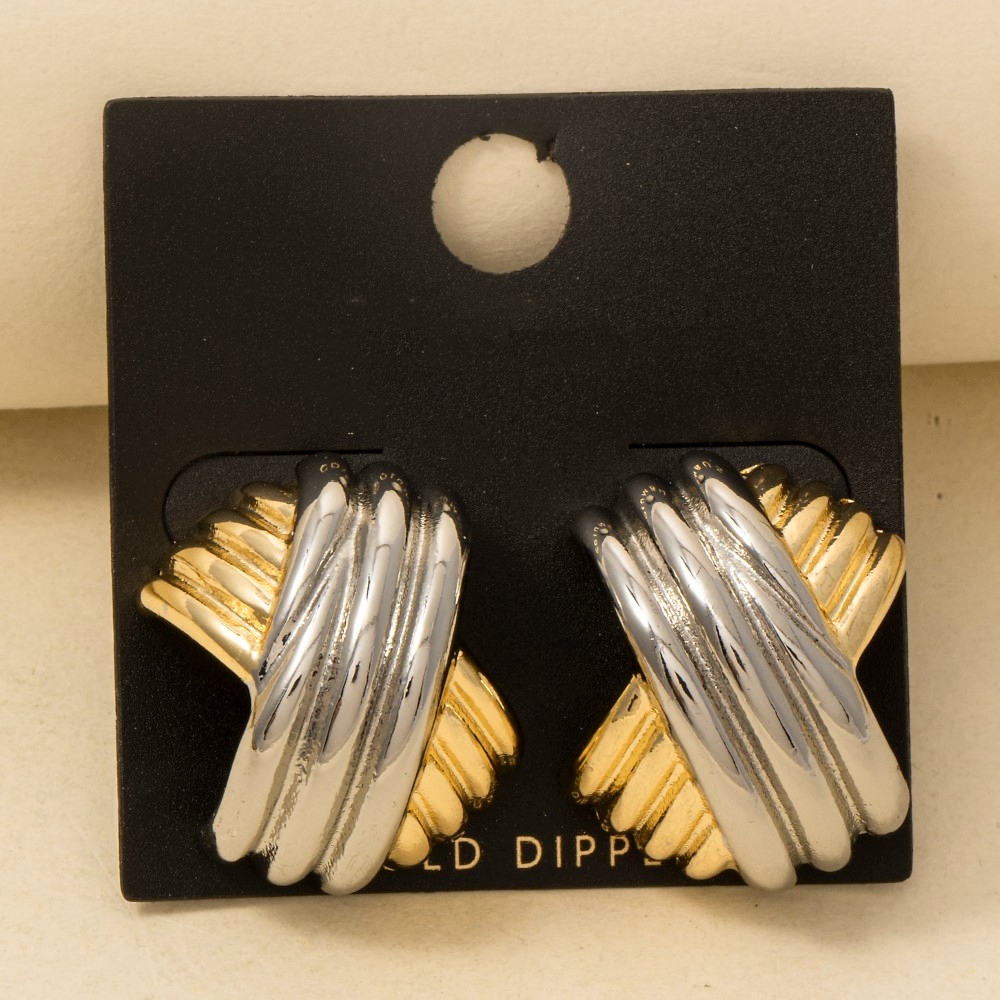 - A timeless piece that will never go out of style, this pair of hoop earrings contains a special gold dipped two tone hash layered design. Infuse your ensemble with a touch of sophistication using this versatile pair of hoop earrings, a game-changer in the world of fashion. Available in GOLD. This item is sold in packs of 1.