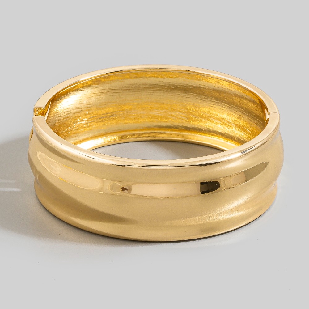 The perfect way to add some edge to your look, this bangle bracelet adds a distinctive gold dipped wide ripple hinge design. Elevate your outfit with this stylish bangle bracelet that's perfect for any occasion. This item is sold in packs of 1.