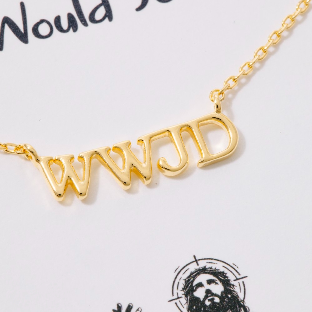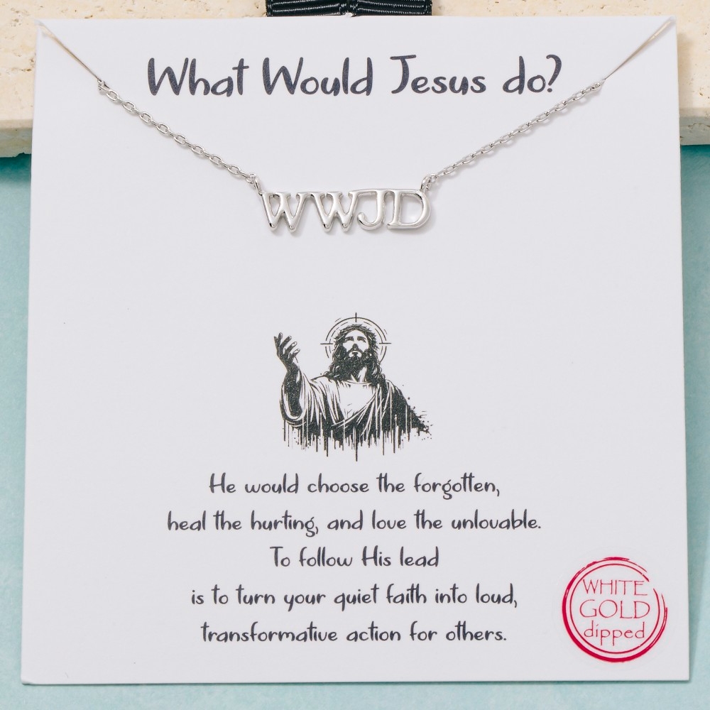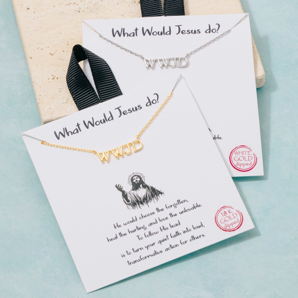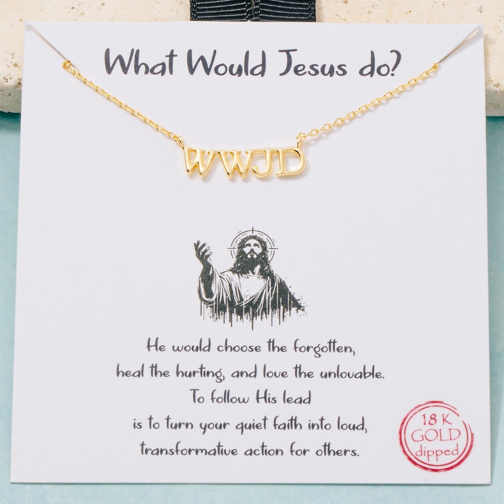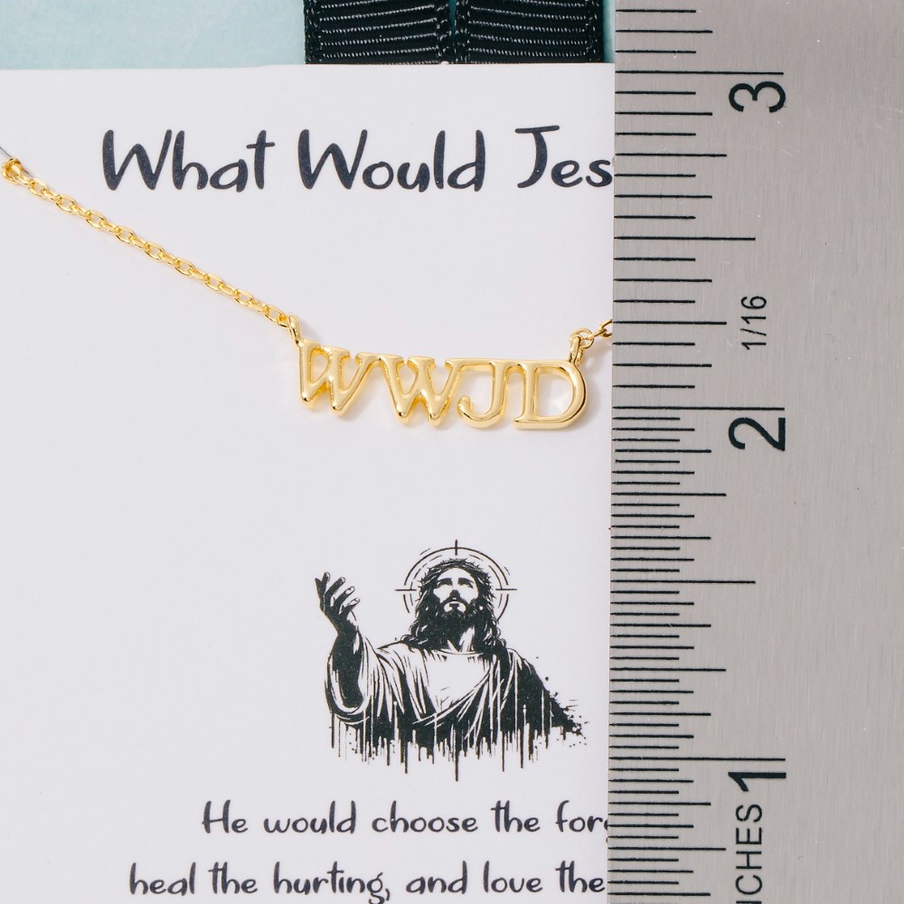• A bold and daring choice that is sure to impress, this pendant necklace showcases a breathtaking gold dipped WWJD print design. This item is a great way to add some texture and dimension to any outfit. Available in GD, RH. This item is sold in packs of 1.