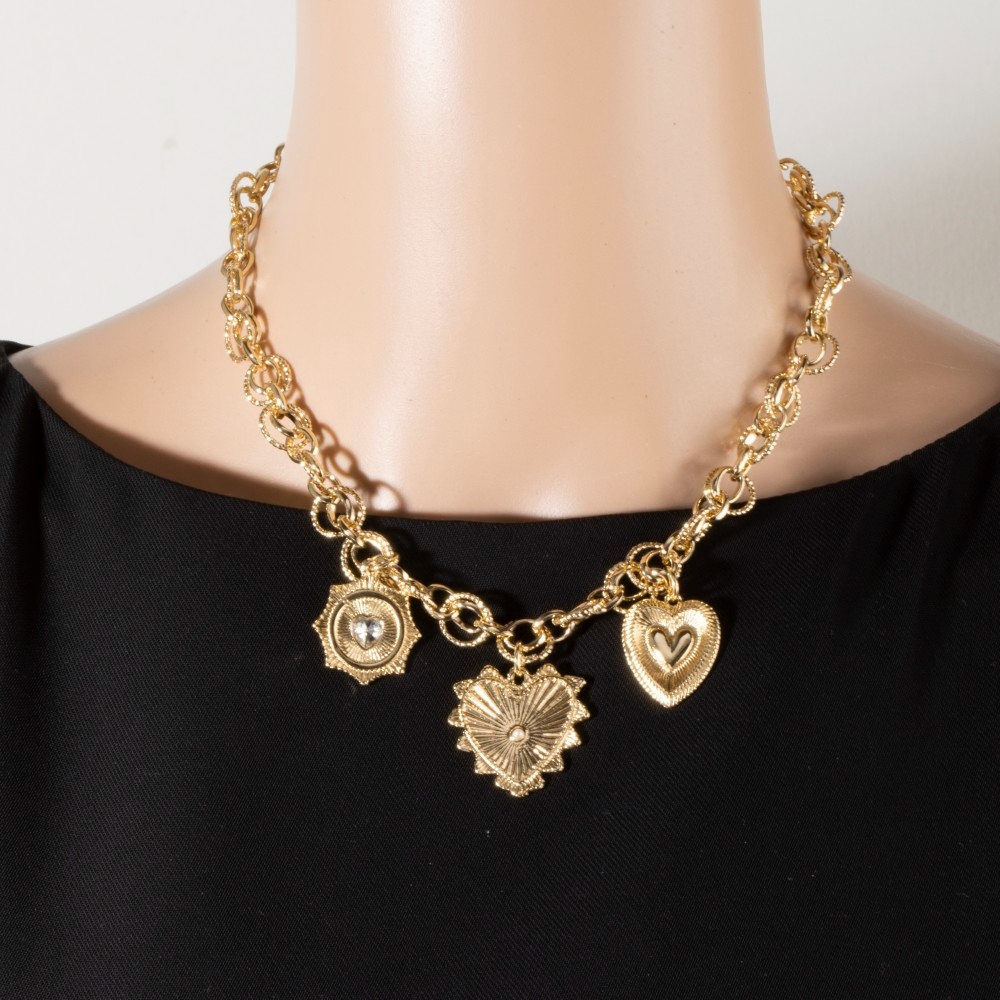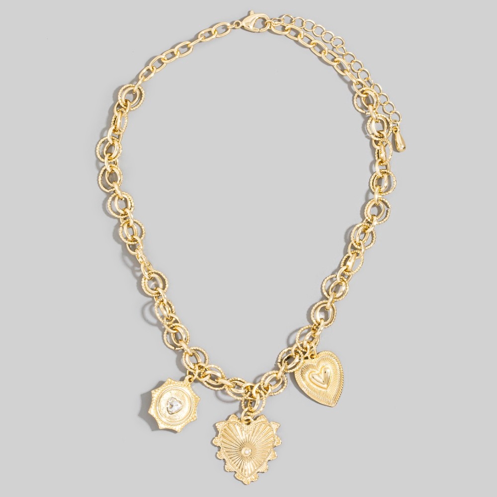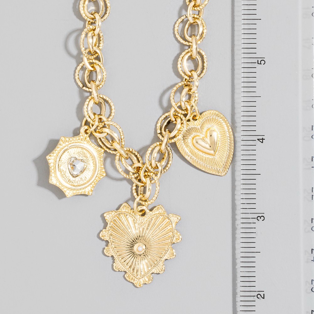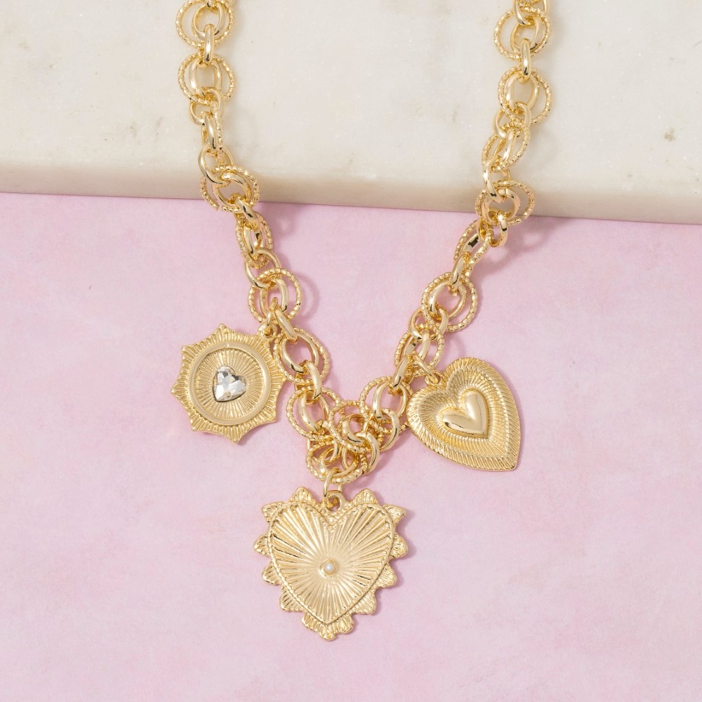 Perfect for any occasion, from casual to formal, this chain necklace includes a stunning gold heart charm design. This chain necklace is the perfect way to add a touch of elegance to any outfit. Available in G. This item is sold in packs of 1.