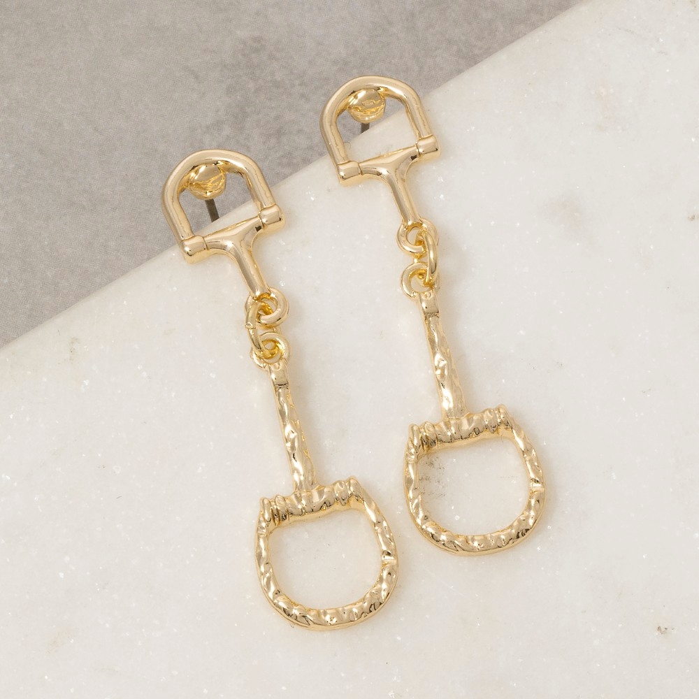 Unleash your inner fashionista, this pair of drop earrings shows off a distinctive gold horsebit design. The perfect way to complete any outfit, whether you're dressing up or keeping it casual. Available in GD. This item is sold in packs of 1.