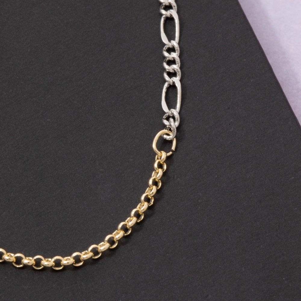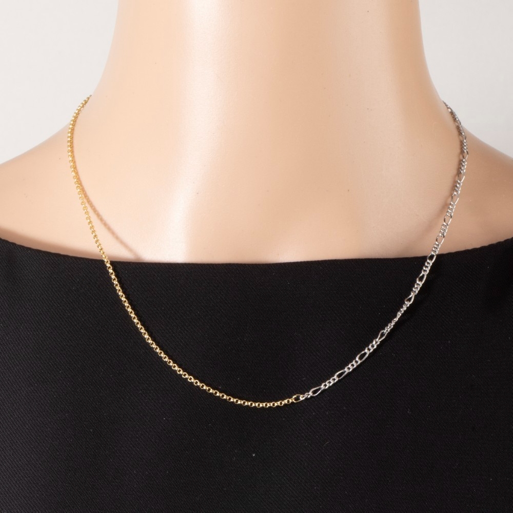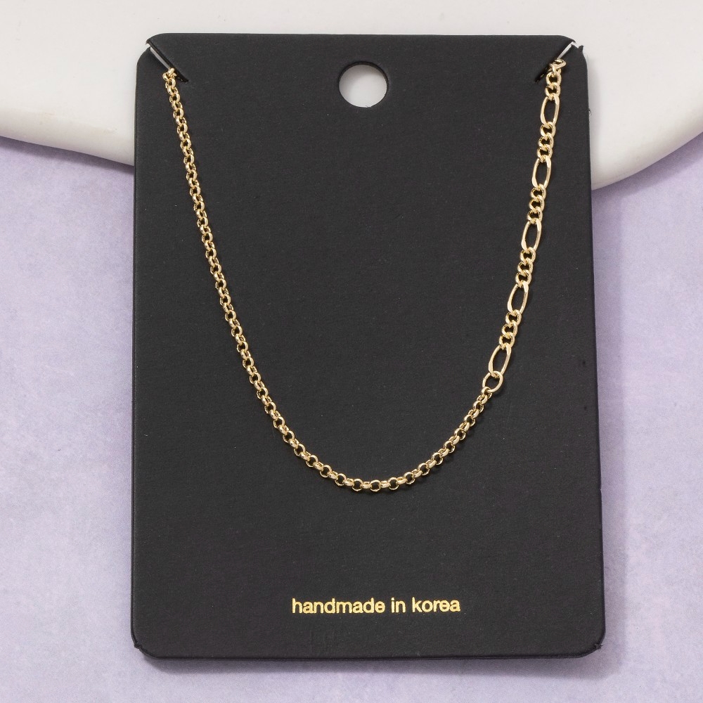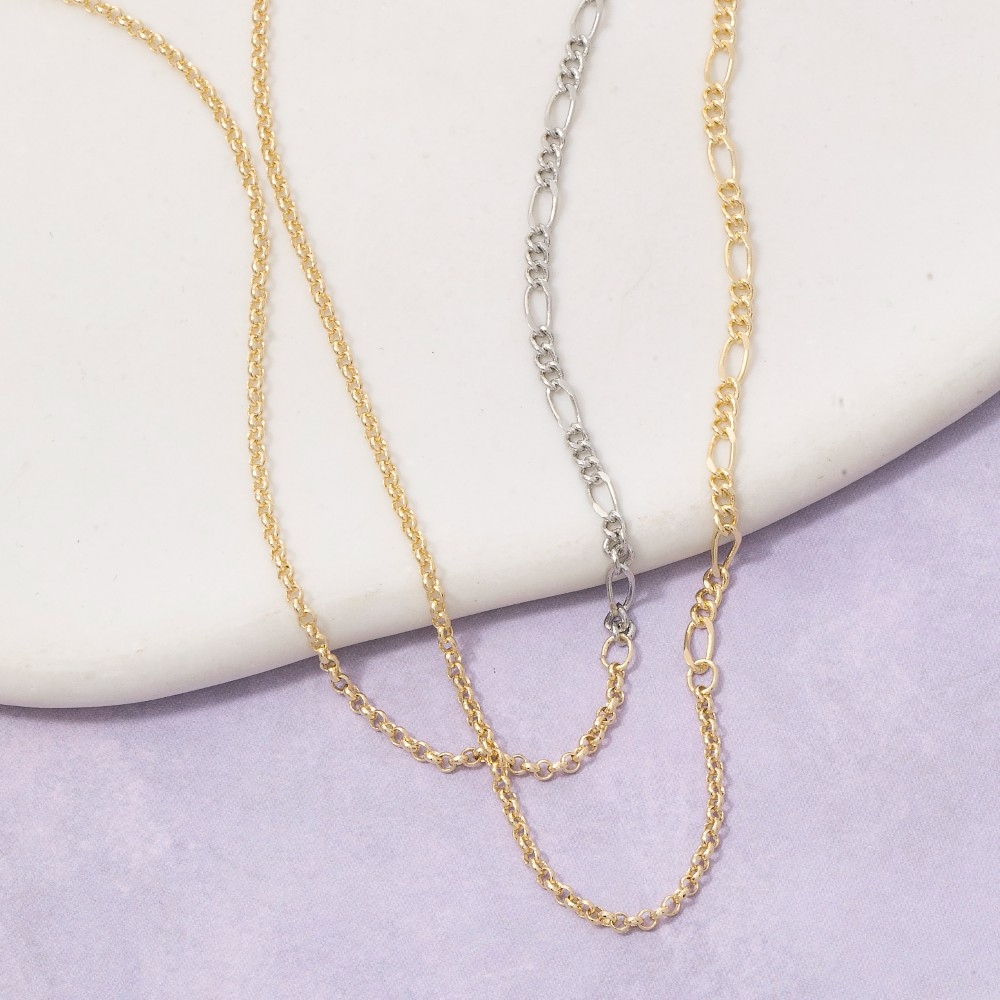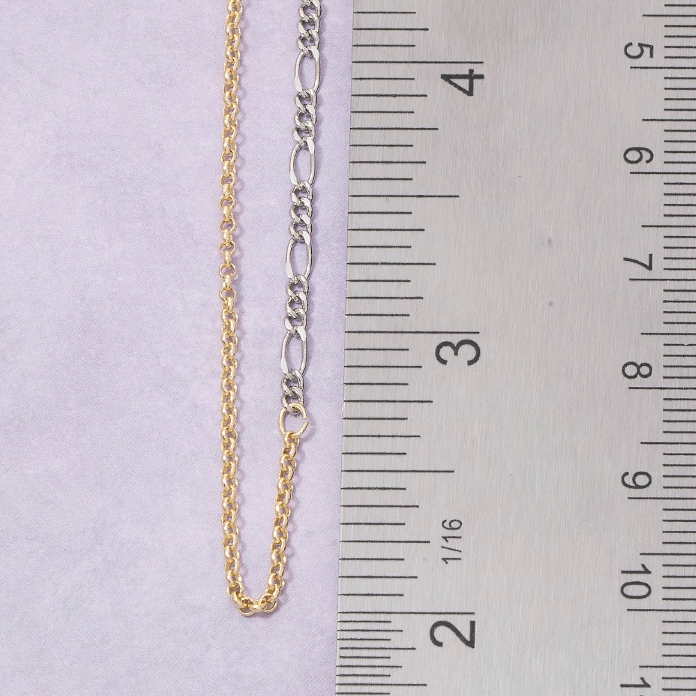 This piece is both timeless and contemporary, this chain necklace includes a stunning gold mixed figaro rolo design. Perfect for adding some personality and flair to your wardrobe, this chain necklace is a must-have. Available in G, TT. This item is sold in packs of 1.