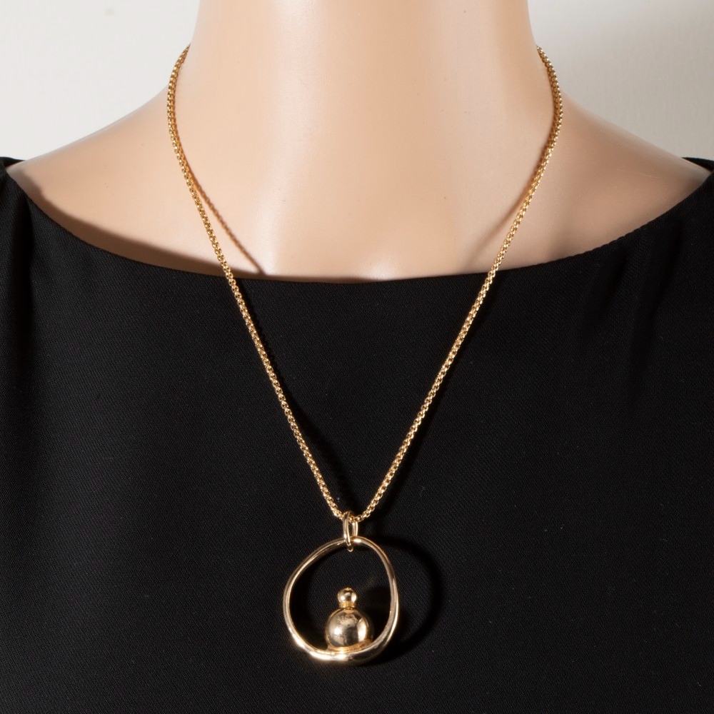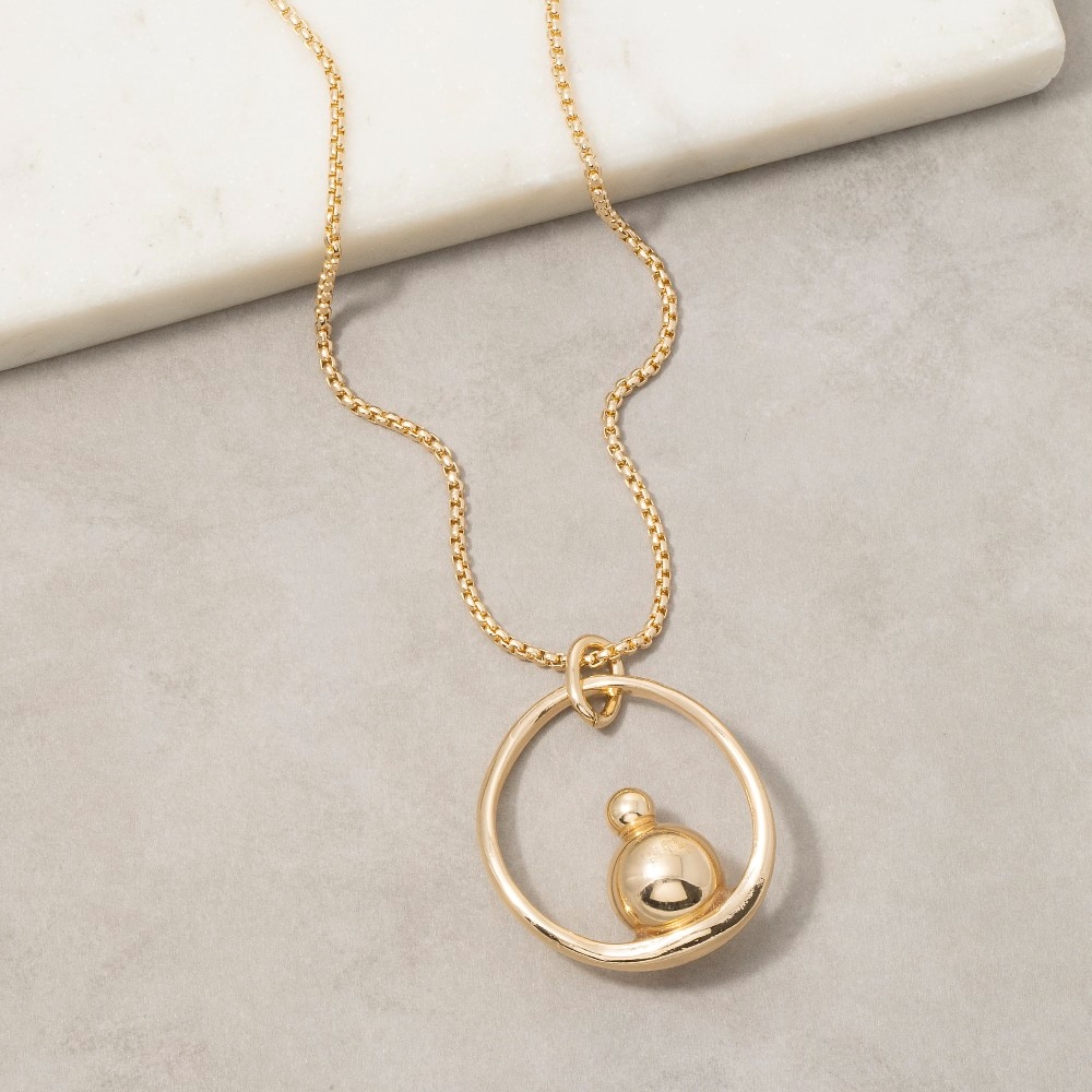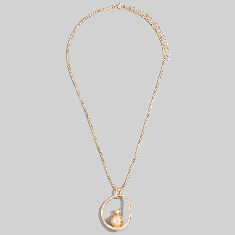 Make a bold statement, this necklace showcases a breathtaking gold orb circle pendant long design. A must-have necklace that effortlessly enhances your style, no matter the occasion. Available in G. This item is sold in packs of 1.