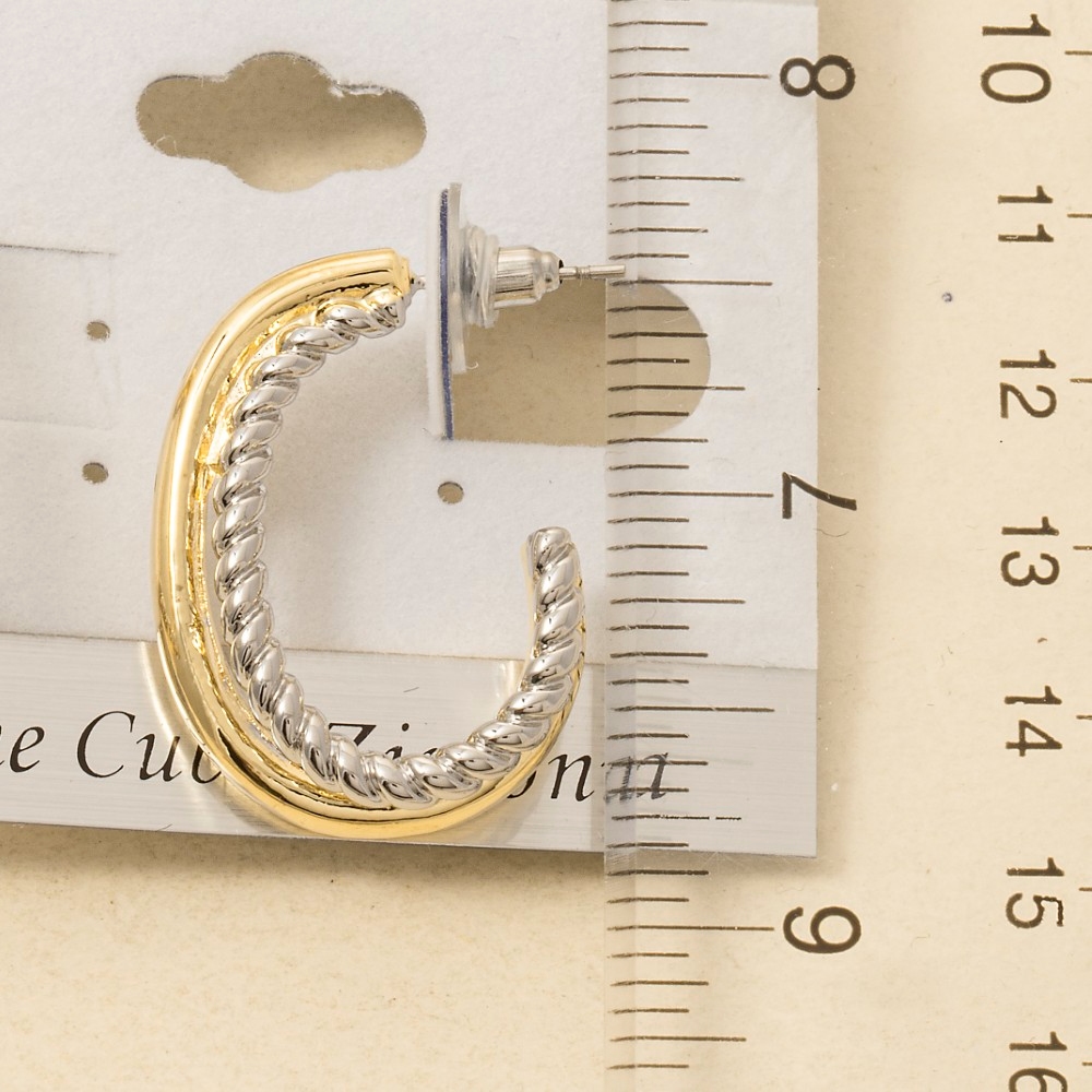- Chic, sophisticated, and always in style, this pair of hoop earrings embodies a sophisticated gold plated two tone layered oval design. The perfect pair of hoop earrings for completing any outfit, whether you're dressing up or keeping it casual. Available in T. This item is sold in packs of 1.
