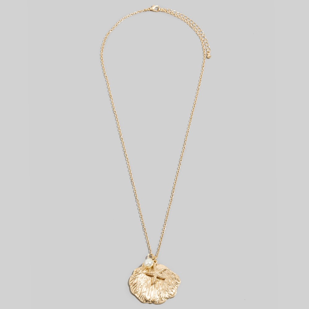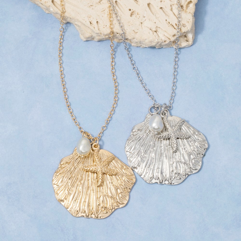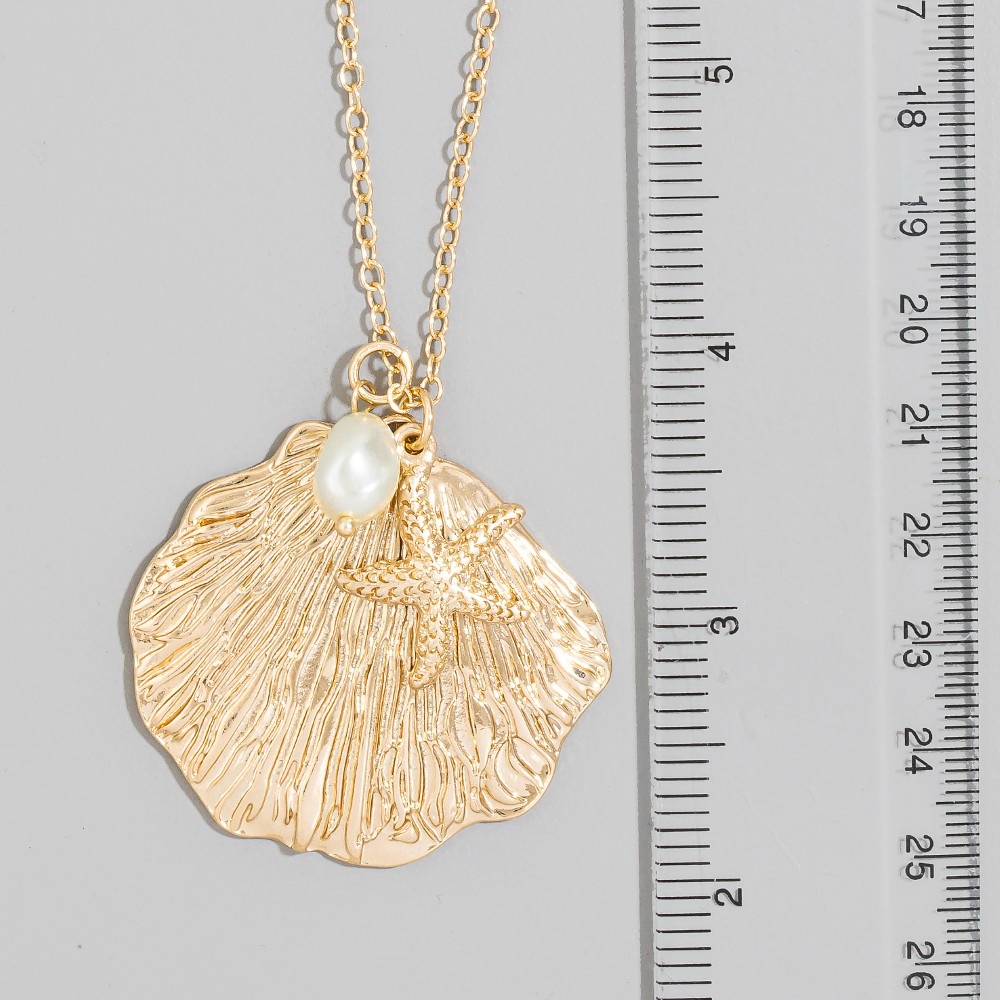 The perfect way to elevate any outfit, this pendant necklace comes with a special gold scallop shell with starfish & pearl design. Achieve a perfect balance of style and sophistication with this versatile pendant necklace, the ultimate choice for the fashion-savvy individual. Available in GDCRM, RHWHT. This item is sold in packs of 1.